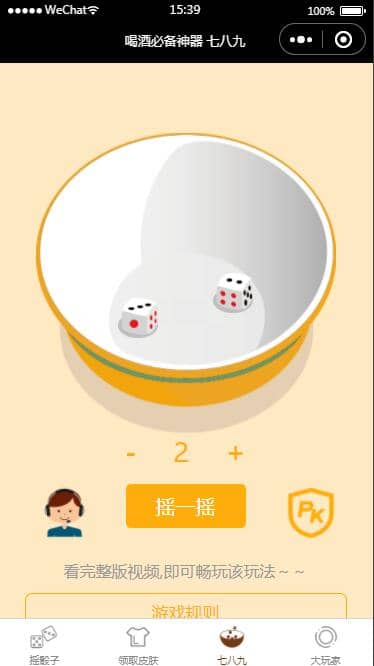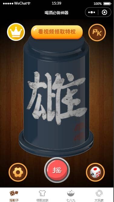 该款小程序还支持换筛盅皮肤哟,拥有多种皮肤看激励视频解释