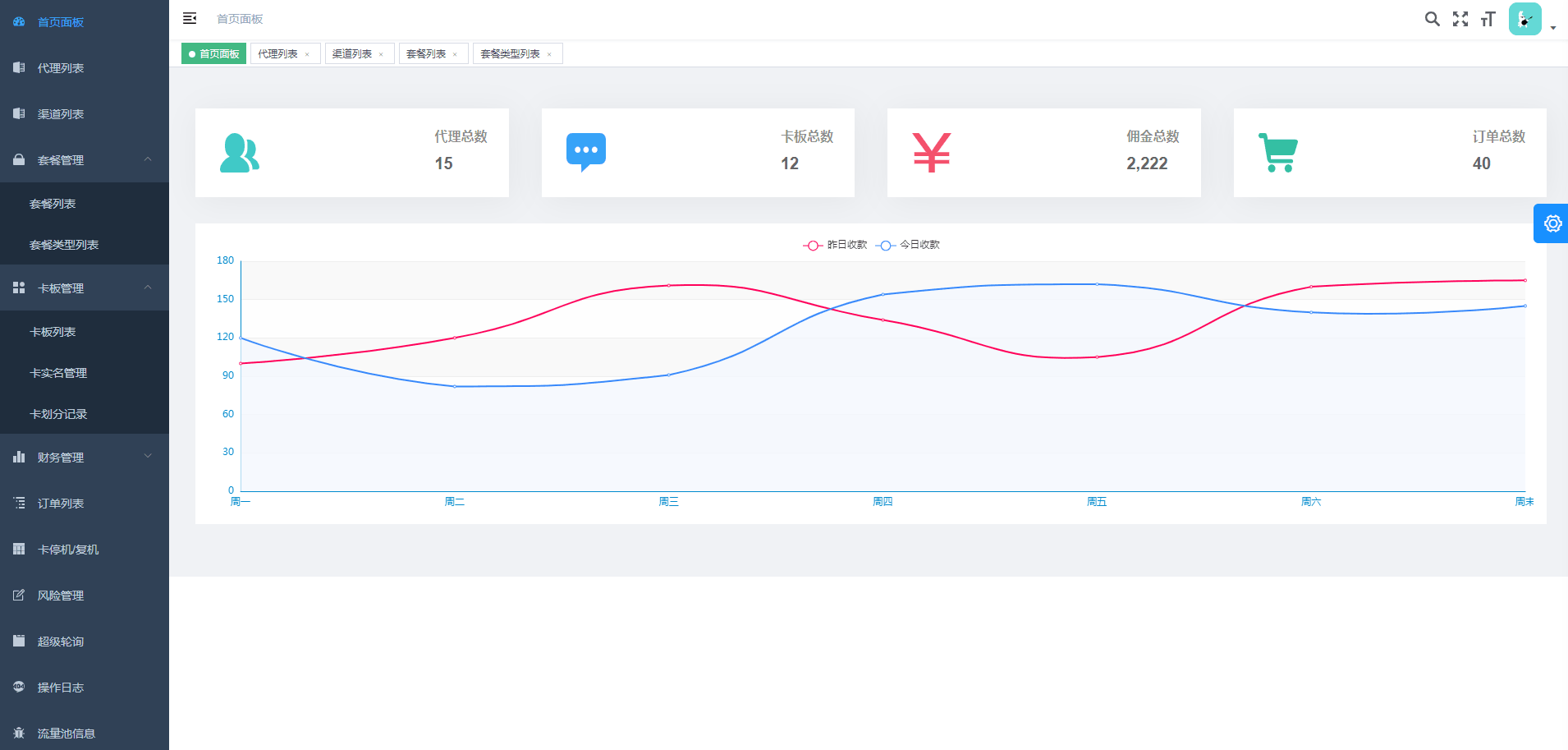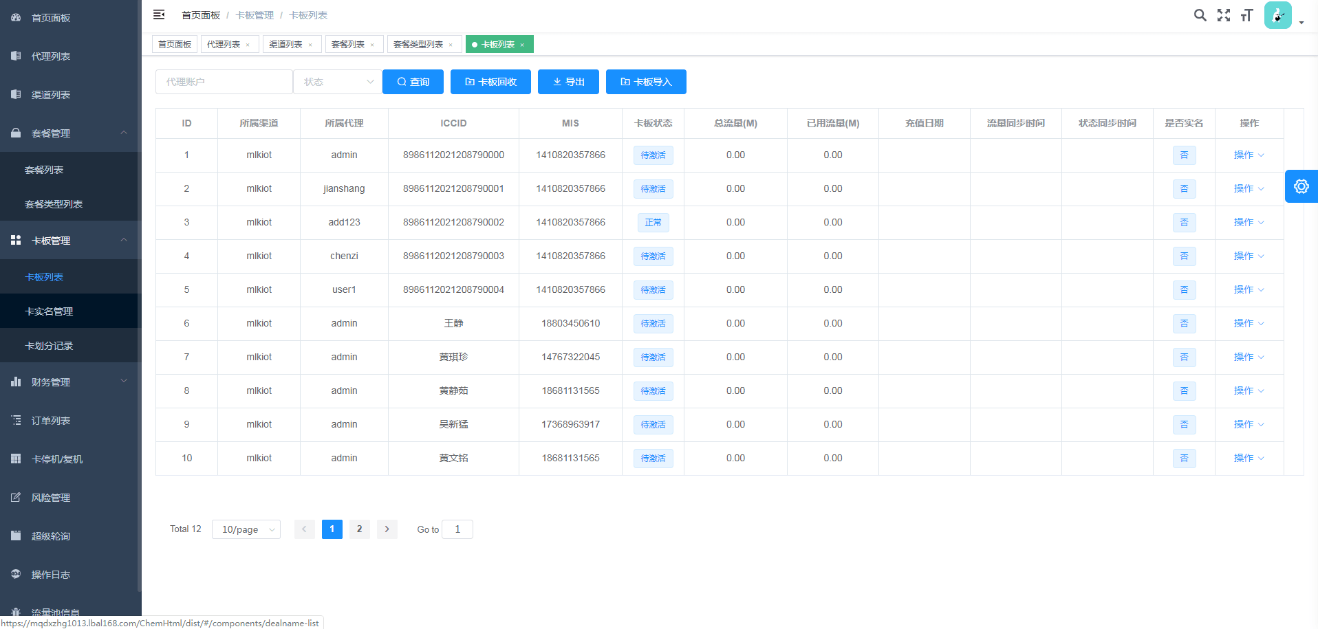 iot项目物理网卡办理体系渠道是市面上很火的流量卡项目,可以用这套渠道体系来办理,实现自定义套餐名以及流量卡运营, 充值收款 以及流量卡运营。 后台功用简介:代理列表办理,渠道列表办理,套餐办理,卡板办理,财务办理,订单列表, 卡停机/复机办理,危险办理,超级轮询,操作日志,流量池信息办理,批量充值。 是否有教程:文件内带具体架起搭建教程及物理网卡办理体系渠道iot项目源码基础环境配置。 我没测试,这东西好像还挺贵的 会员拿去自行研究吧