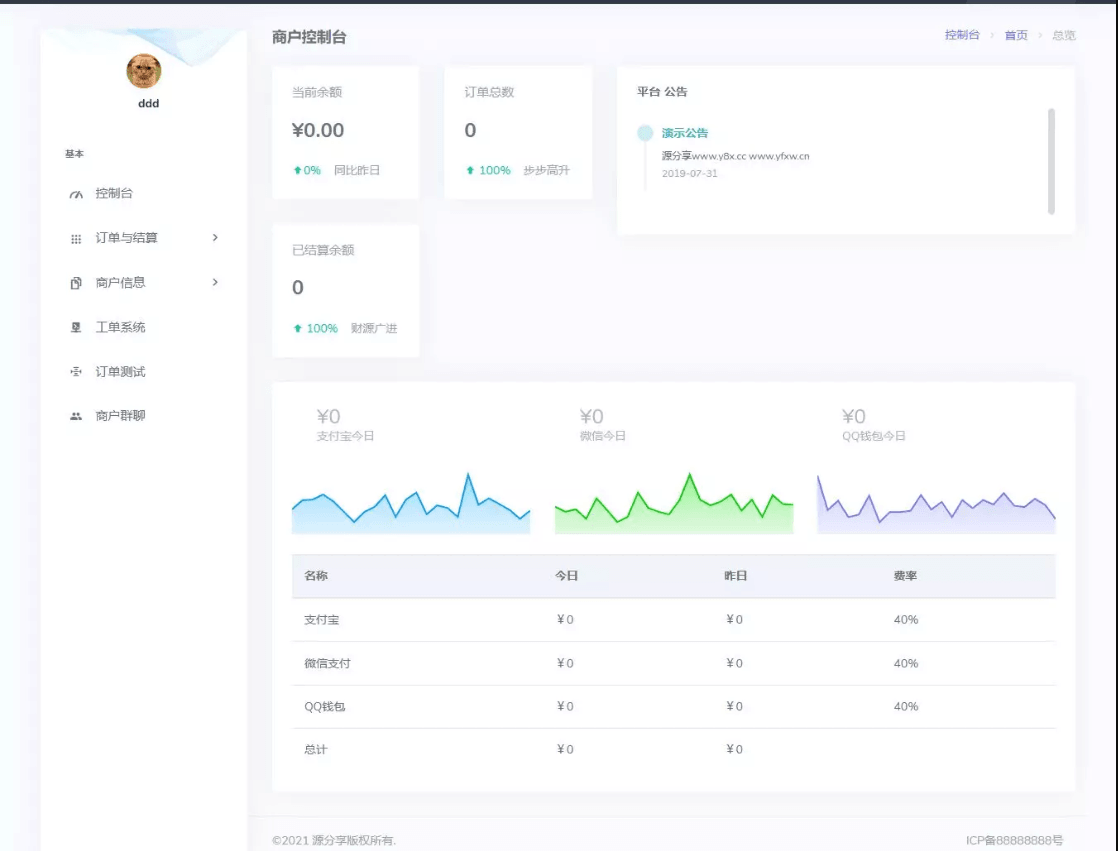 它集成了微信官方支付宝官方电商码支付电商钱包的免签即时到达界面,让个人用户也可以使用易用的电商商户系统,自带10套基本模板。 修复短信注册,换成阿里巴巴云短信 上传徽标和徽标链接的背景更改 后台登录密码不清楚 清除平台统计 删除不必要的功能,优化性能体验。在前台添加新的不需要验证的注册方法 消除不必要的功能,优化性能体验 修复前台无法上传支付二维码的功能 维修后台无法将代码付款标识和密钥保存到数据库中