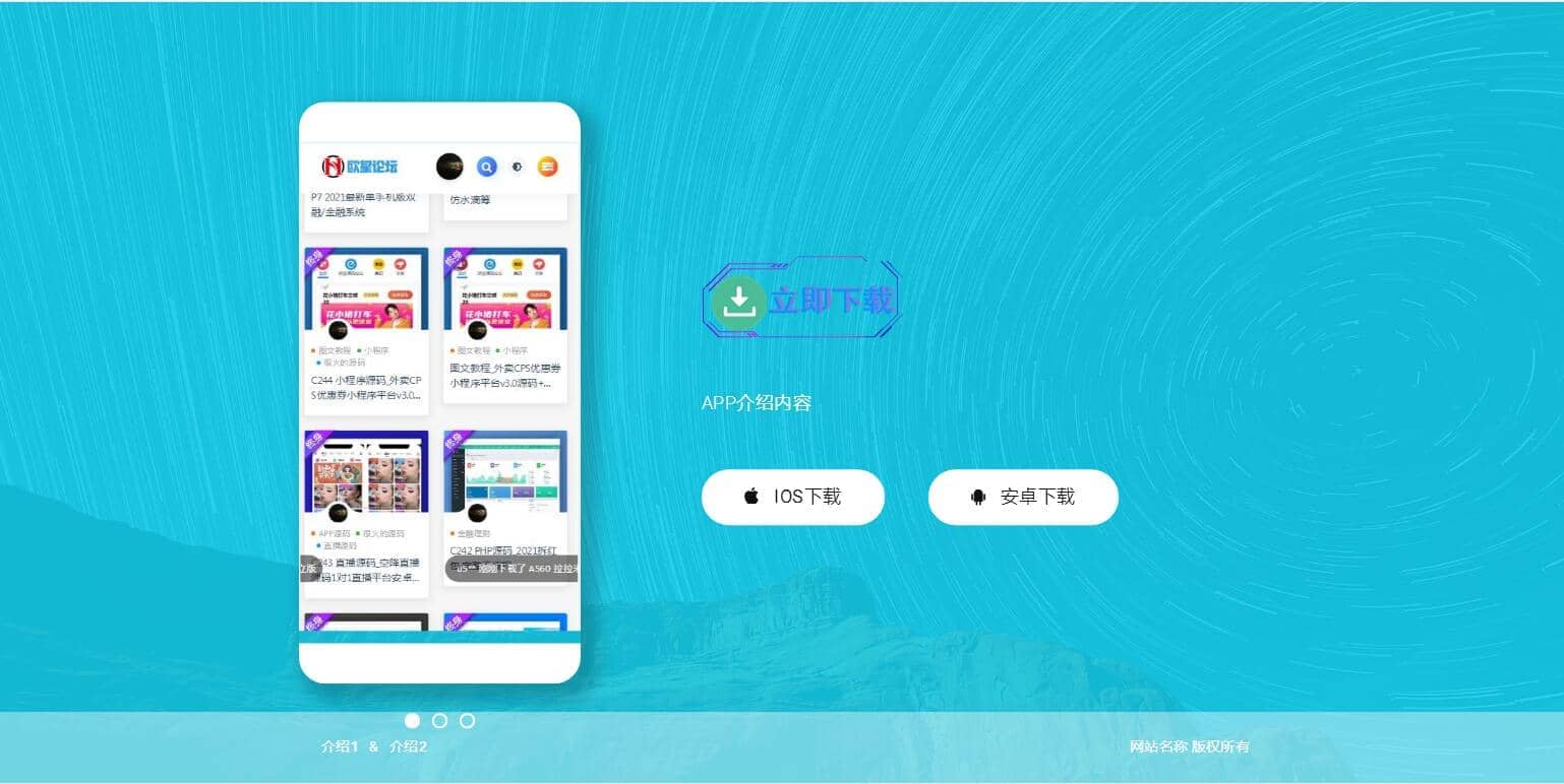 APP下载页源码(自适应手机版)原创设计、手工书写HTML5+Css;注意本源码不包含后台,轻量级响应式APP下载页源码! 企业猫亲测截图: 声明:本站所有文章,如无特殊说明或标注,均为本站原创发布。任何个人或组织,在未征得本站同意时,禁止复制、盗用、采集、发布本站内容到任何网站、书籍等各类媒体平台。如若本站内容侵犯了原著者的合法权益,可联系我们进行处理。