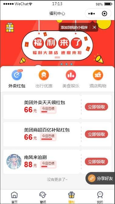表情包+壁纸+外卖+头像+流量主+采集+后台上传表情包功能,全面启动,带后台 后台带一键采集表情包,壁纸,头像功能,也可以自己手动上传 外卖功能对接的是订单侠 有流量主功能。