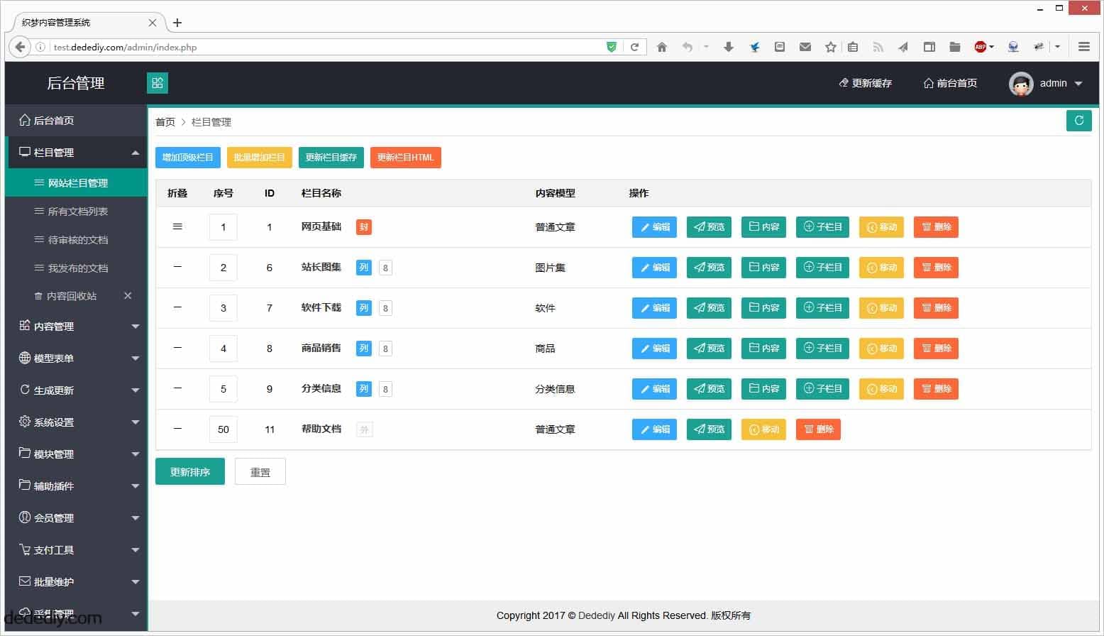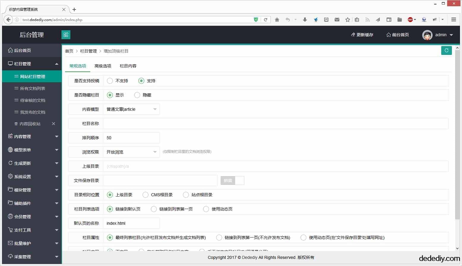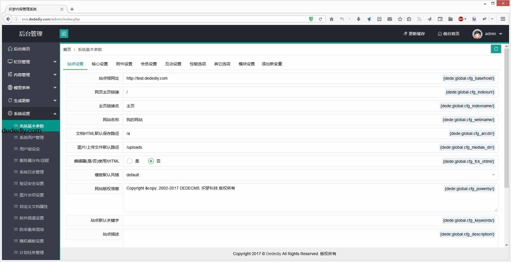 上传完文件后,清空浏览器临时文件,浏览器里打开 http://域名/dede   预览效果