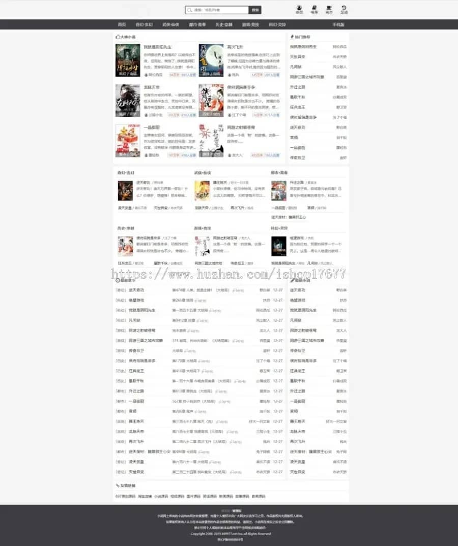 织梦 Dedecms 小说网站整站源码,带有手机版、小说采集工具 (关关采集、后台采集、火车头采集,采集速度相当强悍, 一天能采近百万章节);东西完整全套! 源码文件夹带部署搭建教程,与普通织梦安装方法几乎一致,另外有专门的官方教程,非常详细。