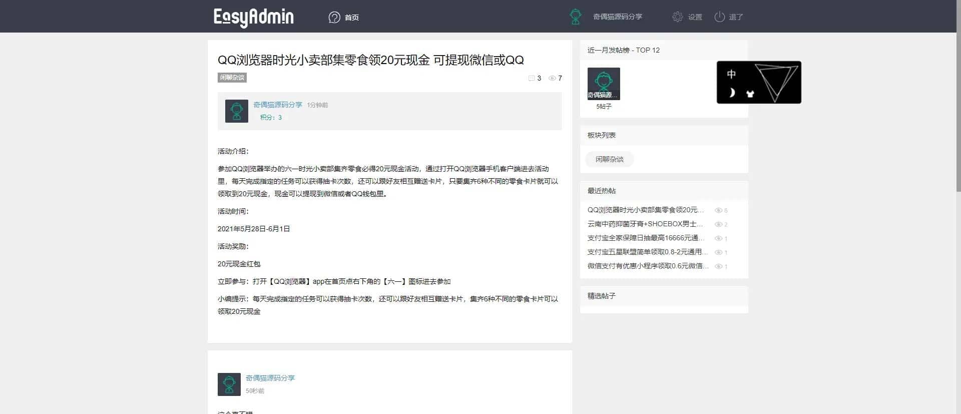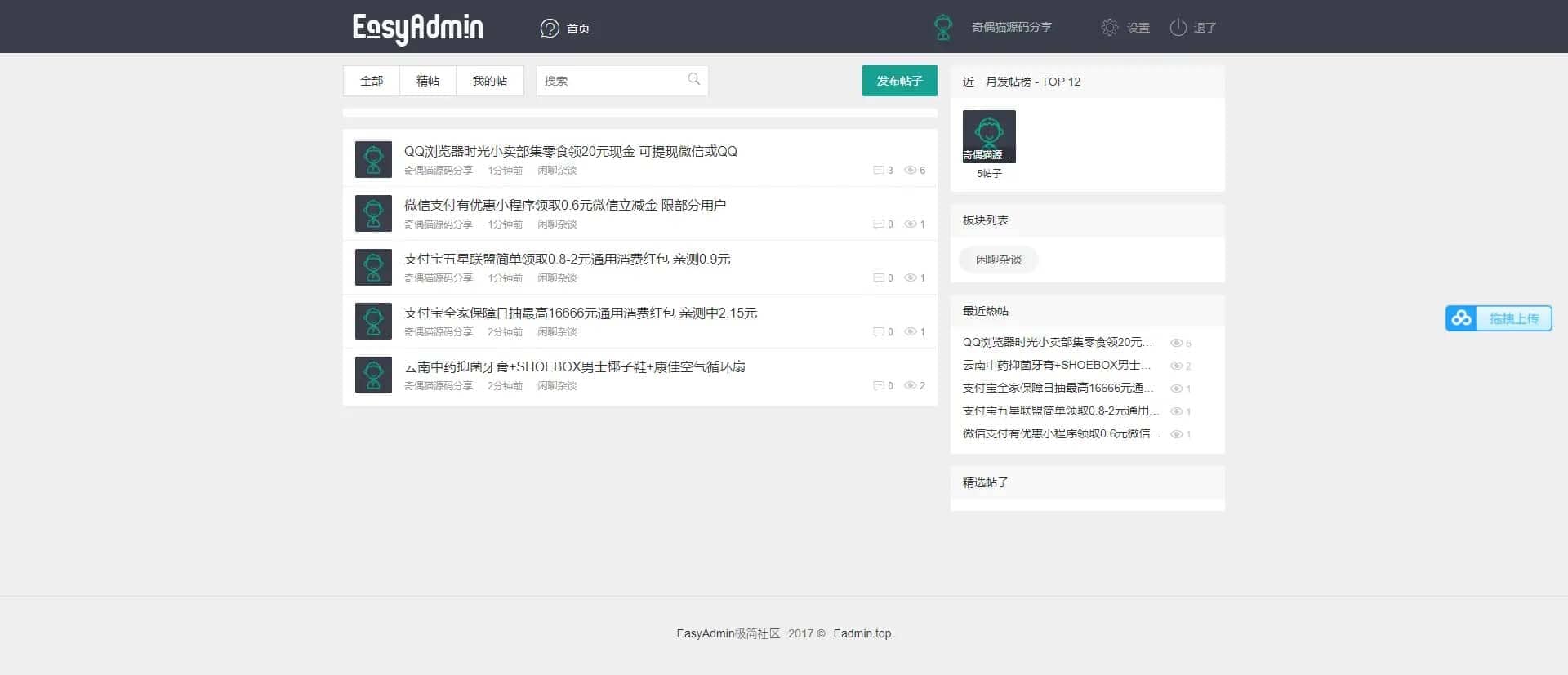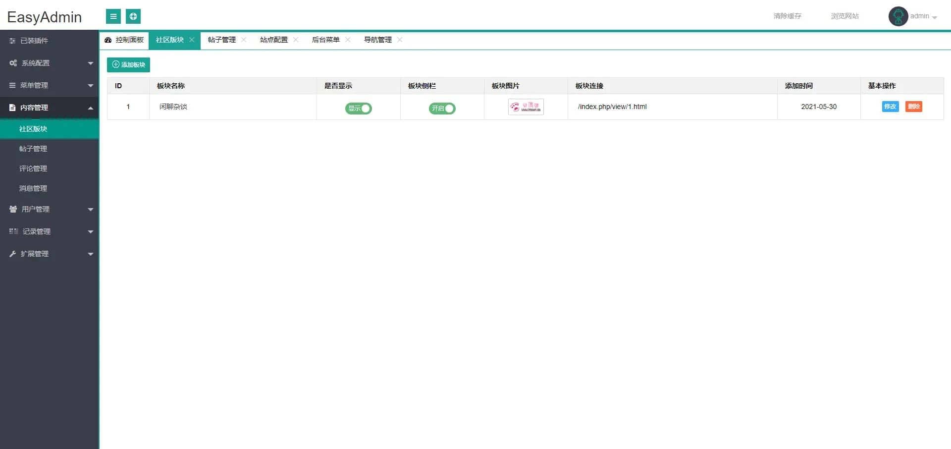 极简社区后台制作为通用后台,集合了数据库的备份与还原,权限控制,后台菜单控制等通用功能,可以供开发者开发各类前台使用;