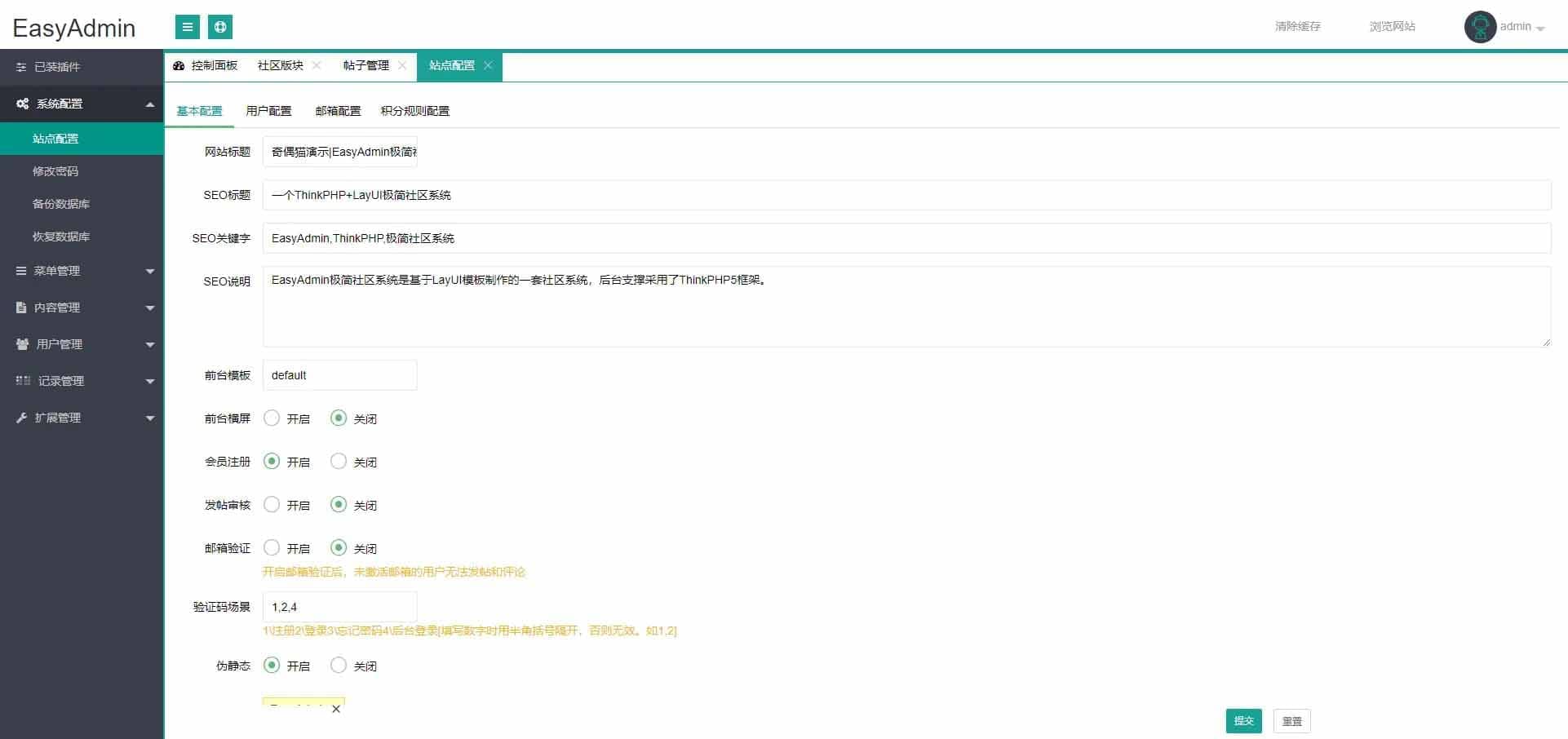 增加了伪静态后台配置;