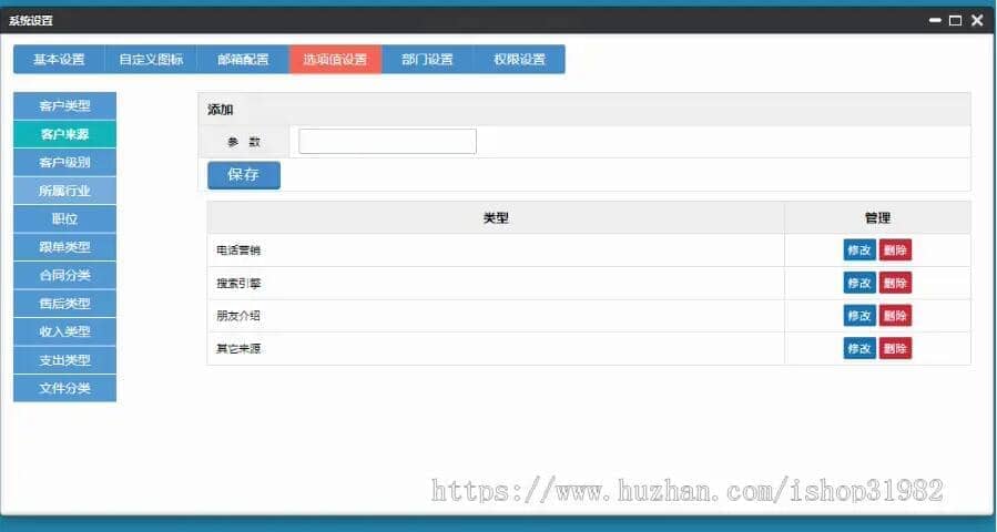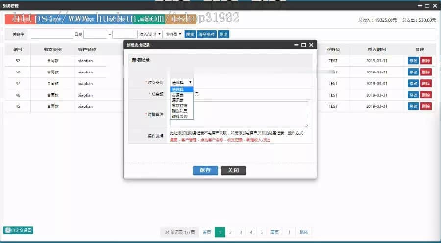 系统安装环境:linux + php + mysql 店主独自修改修复版本,不要拿别家几十块的烂大街BUG版本来比价格,一分钱一分货 2021年5月29日修复更新: ①、修复数据导入BUG问题 ②、修改支持linux系统环境下无错安装 ③、修复财务管理数据删除报错BUG 更多Saas版OA系统、进销存系统请咨询店主! 2019.11.15修复了增加客户,没有提示必要字段提示 2019.11.15修复增加正常手机号码的判断 2019.11.15修复增加员工帐号添加到20个后底下看不到的错误 2019.11.15修复不能上传pdf附件的错误 2019.4.1修复合同新增到款编辑功能 2019.3.30新增客户档案跟单记录 2019.3.29修复客户基本档案订单模块订单金额显示 2019.3.28新增客户资料导入功能 2018.10.7修复更新了 1.修复了员工删除之后,依然在聊天工具列表 2.修复了财务管理费用搜索,筛选 收入和支出问题。 2018.09.27修复更新了 1.创建客户资料,自动创建默认联系人。 2.修复当设置员工管理范围的时候,只能看到自己的客户。 看不到自己管理范围其他员工的客户。 跟单,订单,合同,售后,费用。 3.修复了通知栏目,跟单和合同无法直接点开。 4.修复了商品库存管理,添加订单自动减库存。 2018.0816修复更新了 1. 客户、跟单、订单、合同、费用等导出。直接导出excel 2.修复了批量删除和转移 自动回到登录页。