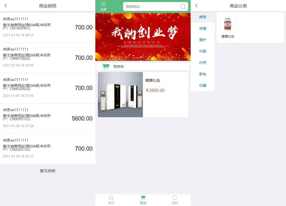 后台密码搞不定,感兴趣自己尝试吧。 一款比较简单的微商分销代理商城。前台可申请区域代理,后台设置升级条件和佣金奖励百分比。