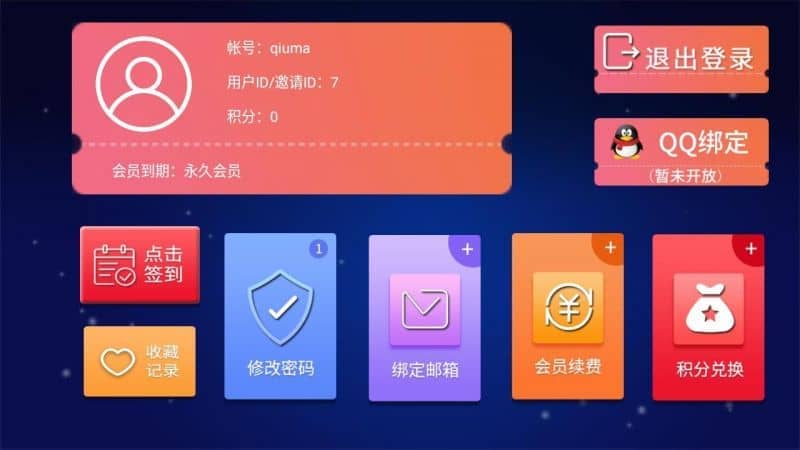 对接苹果CMSv10。无视模板要求。只要你后台开启了api就可以。就算你关闭网页版,TV端照样可以接入 此版带会员功能,对接的是如意网络验证系统1.71版。 支持在线更新、强制更新、不更新不给用。 会员功能带注册邀请、绑定邮箱、邮箱找回密码、修改新密码、卡密充值、签到、积分兑换会员。 带有电视直播功能、首页滚动公告、轮播大图广告或者轮播大图视频推荐。