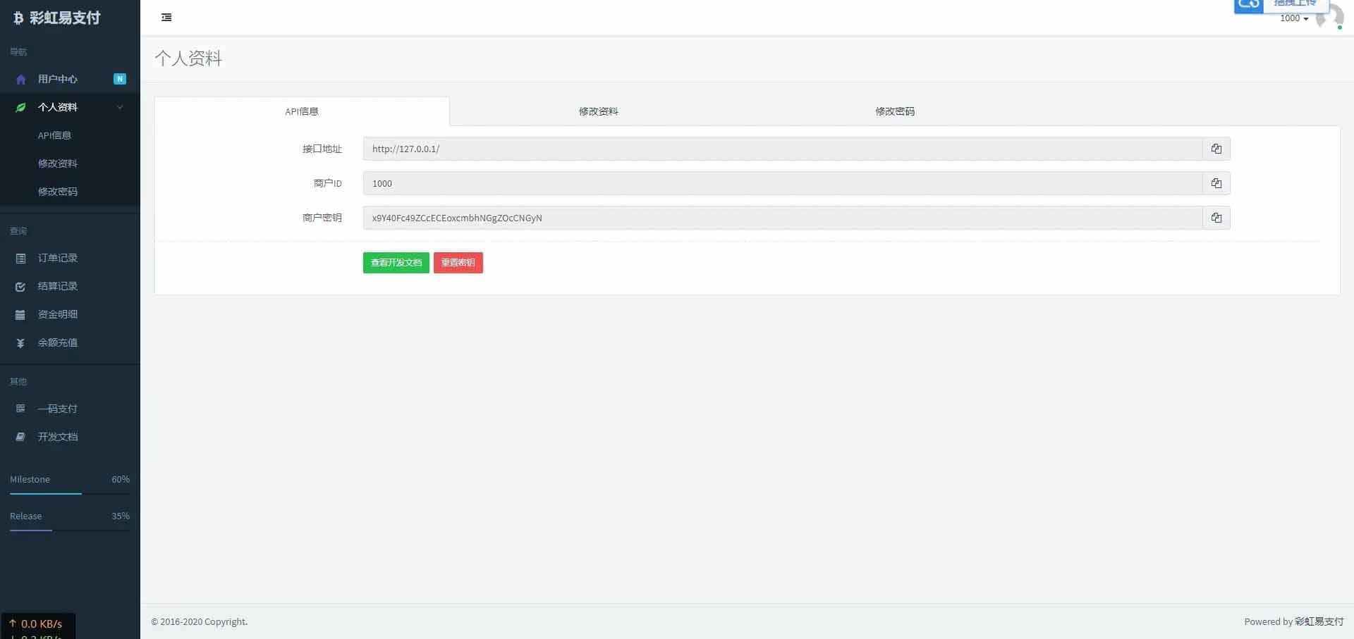 直接安装即可、彩虹的东西还是非常完善了的。 此版本为彩虹易支付原作者二开版本,新加了很多功能,新功能:API退款,轮训支付,网银支付,京东支付, 实名认证更多功能自己登录演示后台 再带11套首页模板,比原版不知道好用多少,犹豫本人这短时间一直在国外无法搭建演示测试,但是这个精品必须搭建了! 这个比老版本好很多,全新支持2代支付宝支付,完全开源无任何加密,一出来我就买来研究了!! 新版彩虹全开源,没有任何一个地方加密,方便二开!!!!