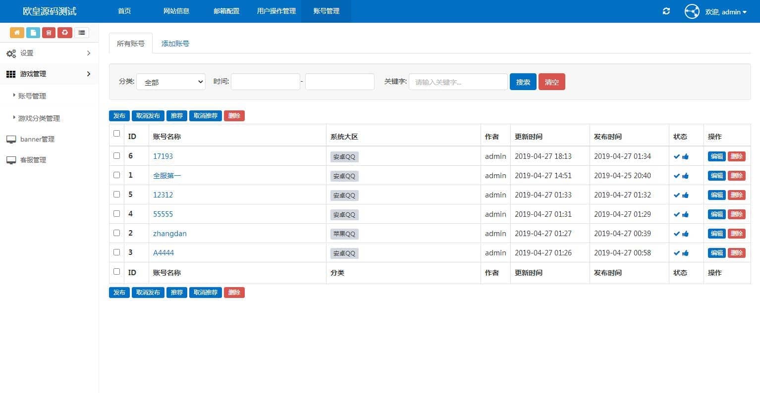 ThinkCMF开发的一款 游戏账户出售 游戏账户交易 手机展示源码。带后台 东西比较简单,有cdn的css和js失效了,自行替换一下即可