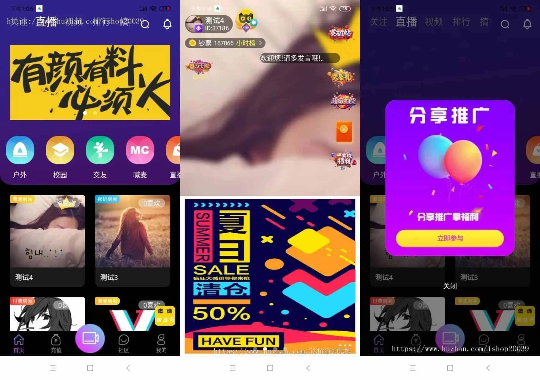 Web+安卓+H5+短视频+vip守护+进场坐骑+主播pk+互动连麦+直播间红包+直播间幸运礼物+商城+进场提醒+收费房间试看 直播系统功能亮点: 1直播带货(主播端可开店带货) 2抖音短视频(高仿抖音视频) 3动态朋友圈(朋友圈可发视频、图片可评论点赞) 4远程礼物(无人直播云端蹦迪,剧本模式可远程遥控主播增强娱乐互动性) 5粉丝团英雄帖(1元吸粉、充值转换利器) 6超级抽奖(直播间线上线下抽奖增强粉丝积极性) 7豪华礼物全站飘屏提醒(特殊豪华礼物全站直播间提醒点击可进入围观) 8小时榜(优化了im及socket增加小时统计增强主播热情) 9pk时粉丝可直接进入对方直播间 10自动发言机器人(可后台设置内容随机发言增强代入感) 11依旧小平台DIY傻瓜式操作部分介绍(后台可控、带跳转外站、前端H5输出可Web修改二开) 1.首页双轮播 2.落地页广告按钮 3.直播间滚动字幕 4.直播间落地广告按钮 5.直播间轮播Banner DIY部分的功能基本都是后台可控或是web即可修改二开的、通过前端图片按钮、H5页面的调整以达到平台个性化的目的! DIY模块的更新是为了解决中小平台技术团队人员不齐前端反复修改不一致所以提升了后端的输出能力! 12直播间可对接游戏(额外付费) 13已升级兼容IOS14 系统:Linux CentOS7.2+ 数据库:mysql Android端:Java语言,使用Android Studio开发 IOS端:采用OC语言 ,使用Xcode 工具开发 前端:原生 后台:采用PHP语言,基于 TP框架 软件自带支付接口,支付宝,微信,三方聚合支付可二开添加