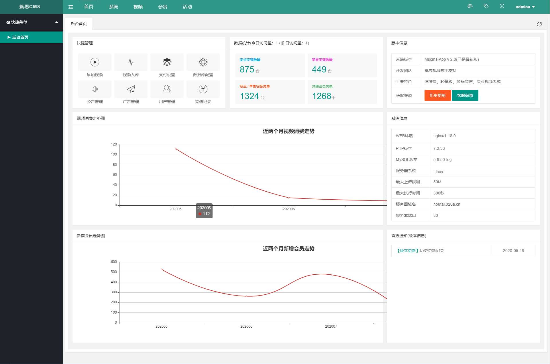 MSVOD是一套视频网站管理系统,采用PHP+MYSQL架构,可以跨平台运行,专为不同需求的站长设计, 支持收费模式,功能强大无比,可谓是类似视频源码中的战斗机,特色功能有收费视频试看、 三级分销、免签支付接口、站群等等,适用于视频收费网站、在线教育网站等 魅思app系统程序源码 V20新版 原生视频APP系统(功能强大,界面大气,比香蕉黄瓜的还要强) MSVOD视频系统 V20官方原生魅思三端完整,包含Android端+ios+h5,可对接一切支付方式 苹果用户 也可直接使用轻量版 ,免去高昂和不稳定的苹果签名