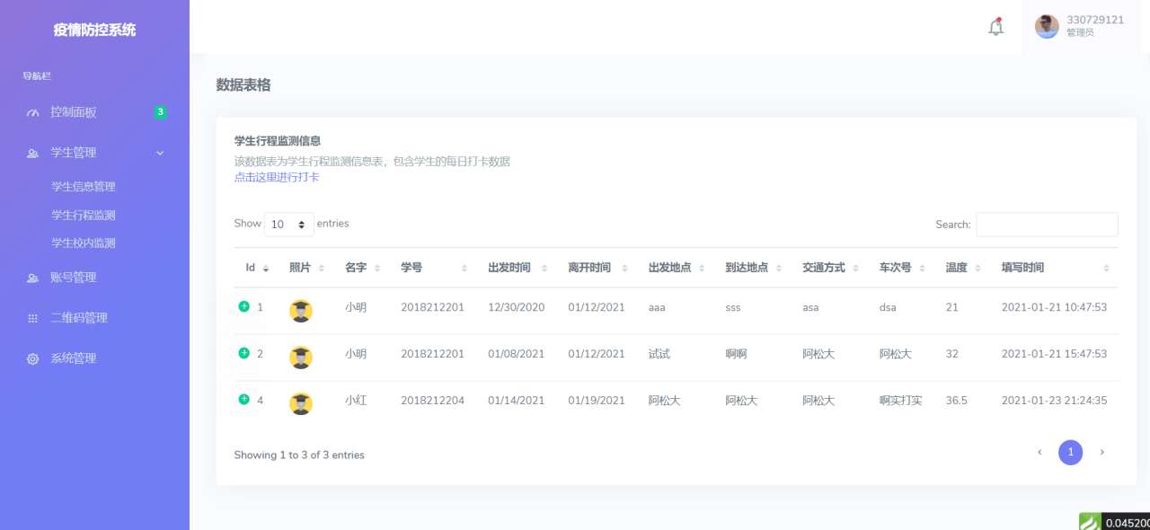 thinkphp6.0框架开发,校园疫情防控进出登记管理系统源码,功能齐全,帮助校园疫情防控,当然也可以应用各种场景。