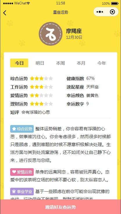 【已测】云开发【星座测评小程序+流量主】星座运势小程序源码 今天给大家带来一款星座运势小程序 不需要服务器,不需要服务器,不需要服务器 重要的事情说三遍 搭建非常简单注册一个小程序加上合法域名替换流量主即可上线运营。