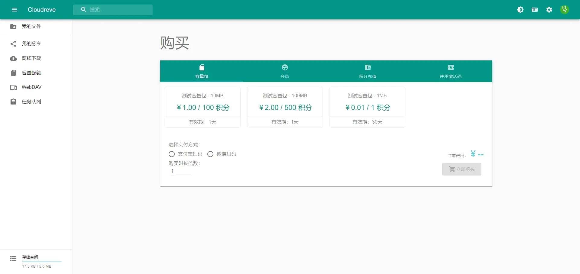 云存储 填写简单信息即可快速对接七牛、又拍云、阿里云OSS、AWS S3,当然你也可以选择将文件存放在本地。 多用户 你可以将Cloudreve作为私有云使用,Cloudreve强大的用户系统也可作为公有云平台使用。 上传策略 不同用户组可绑定不同上传策略,并在多个上传策略间快速切换,充分利用存储资源。 在线预览 支持图片、视频、音频、Office文档在线预览;文本文件、Markdown文件在线编辑。 文件分享 用户可以创建私有或公有分享链接,快速分享文件、目录给好友。 WebDAV支持 你可以将网盘映射到本地管理,或者使用其他支持WebDAV协议的文件管理器,实现无缝跨平台。 响应式布局 全站响应式布局,移动端也能拥有良好的使用体验 文件上传 支持大文件分片上传、断点续传、批量上传、拖拽上传。 易于部署 使用PHP + MySQL架构,简单5分钟即可成功部署您的专属云盘。