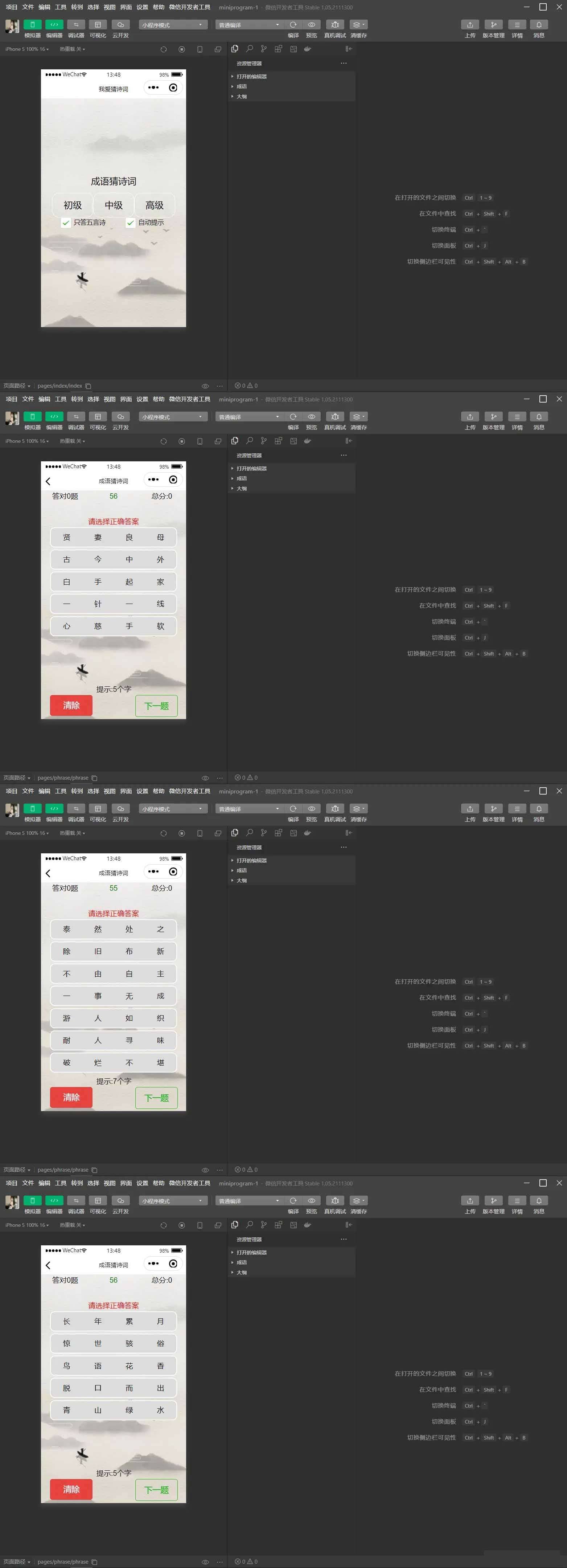 这是一款猜诗句的一款小程序,特别考脑力