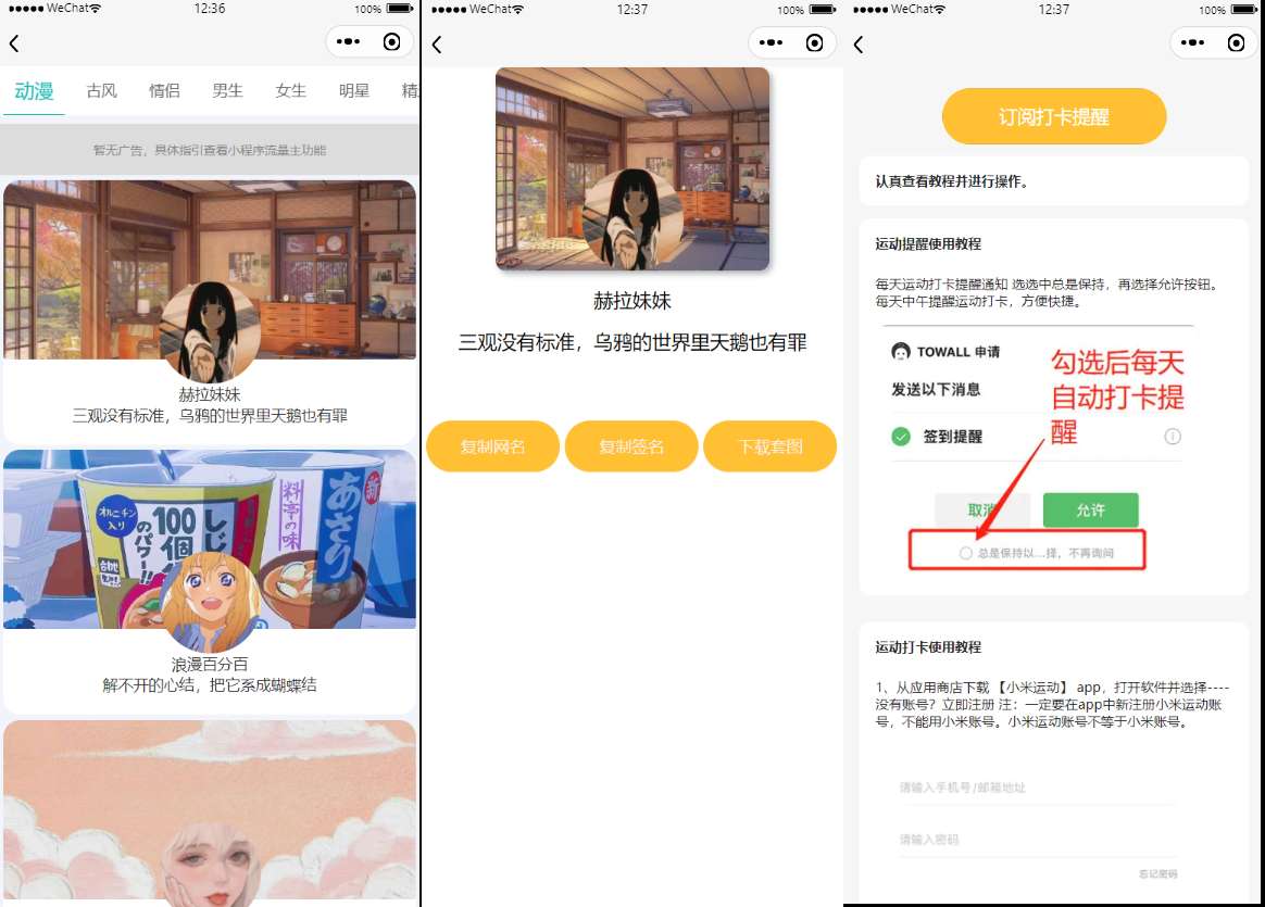 小程序内含多个短视频去水印接口 支持全网几十款平台去水印和图集 另外该款小程序还带了一个强大的头像挂件制作功能 挂件制作内支持自动获取微信头像或者相册上传 里面有丰富的模板提供制作,包括节假日模板 去水印接口里面有一处小编个人感觉特别的强大 解析以后用户可以选择视频,或者多图还是文案模式 也支持修改短视频的MD5值 另外内还有壁纸和套图功能(自动采集) 另外小编还给添加了丰富的流量主模式 比如:激励视频,banner,插屏等 总得来说个人感觉还是可以的,具体大家自己研究一下 下面我们来看看小编的测试演示图吧!