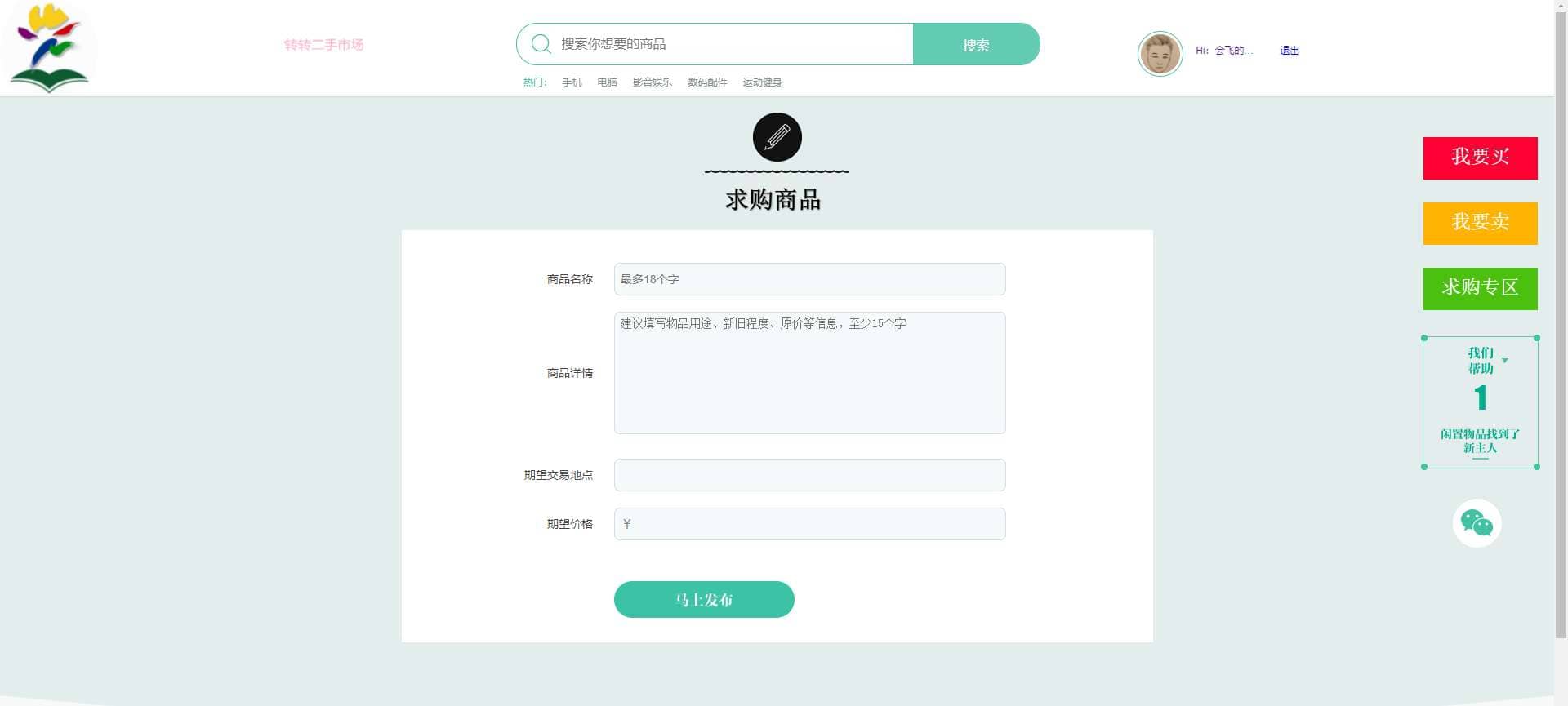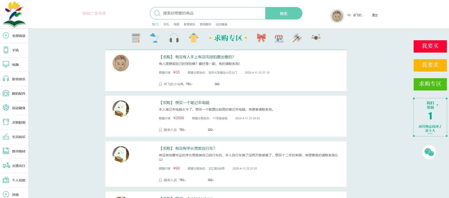 校园转转二手市场源码分享,Java写的应用,改成本毕设啥还是挺不错的,mybatis-plus 和 Hibernate随心用 后台地址:/home/index/index 账号密码:admin/123456 前台地址:/system/login