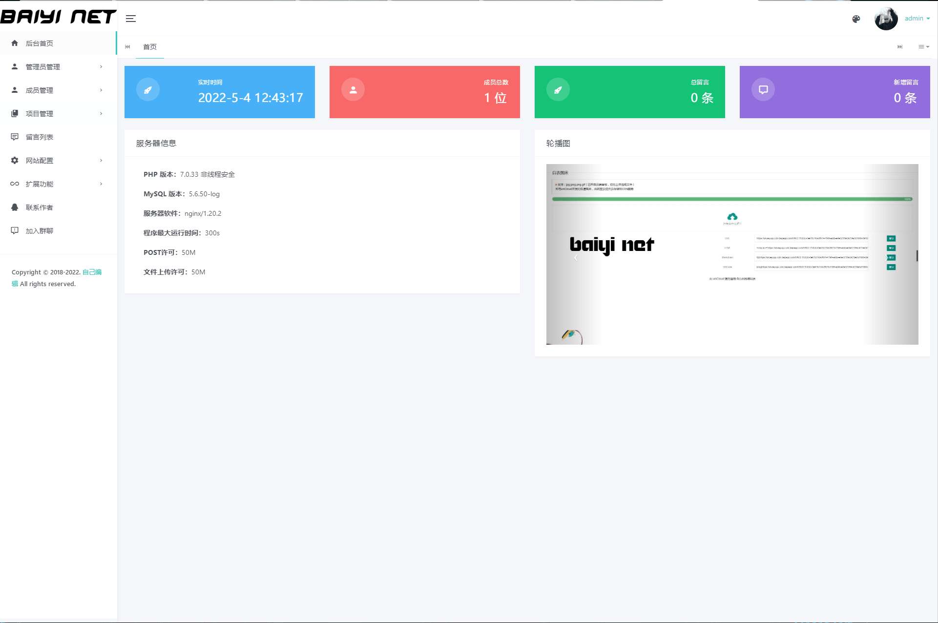 后台账号admin 密码admin