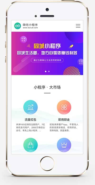 pbootcms内核开发的网站模板,该模板适用于微信小程序网站、软件开发网站等企业, 当然其他行业也可以做,只需要把文字图片换成其他行业的即可; PC+WAP,同一个后台,数据即时同步,简单适用!附带测试数据! 友好的seo,所有页面均都能完全自定义标题/关键词/描述,PHP程序,安全、稳定、快速;用低成本获取源源不断订单! 后台:域名/admin.php 账号:admin 密码:admin 模板特点 1:手工书写DIV+CSS、代码精简无冗余。 2:自适应结构,全球先进技术,高端视觉体验。 3:SEO框架布局,栏目及文章页均可独立设置标题/关键词/描述。 4:附带测试数据、安装教程、入门教程、安全及备份教程。 5:后台直接修改联系方式、传真、邮箱、地址等,修改更加方便。