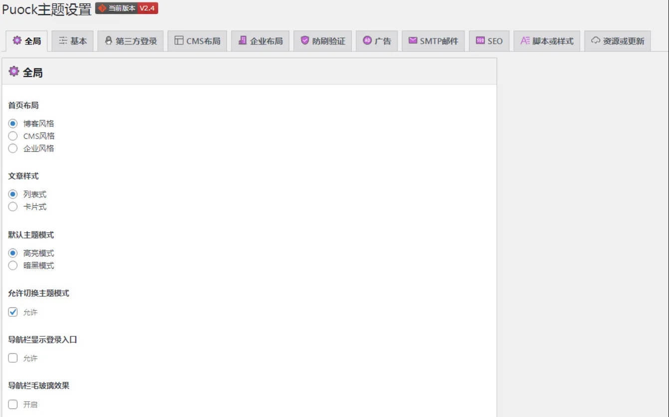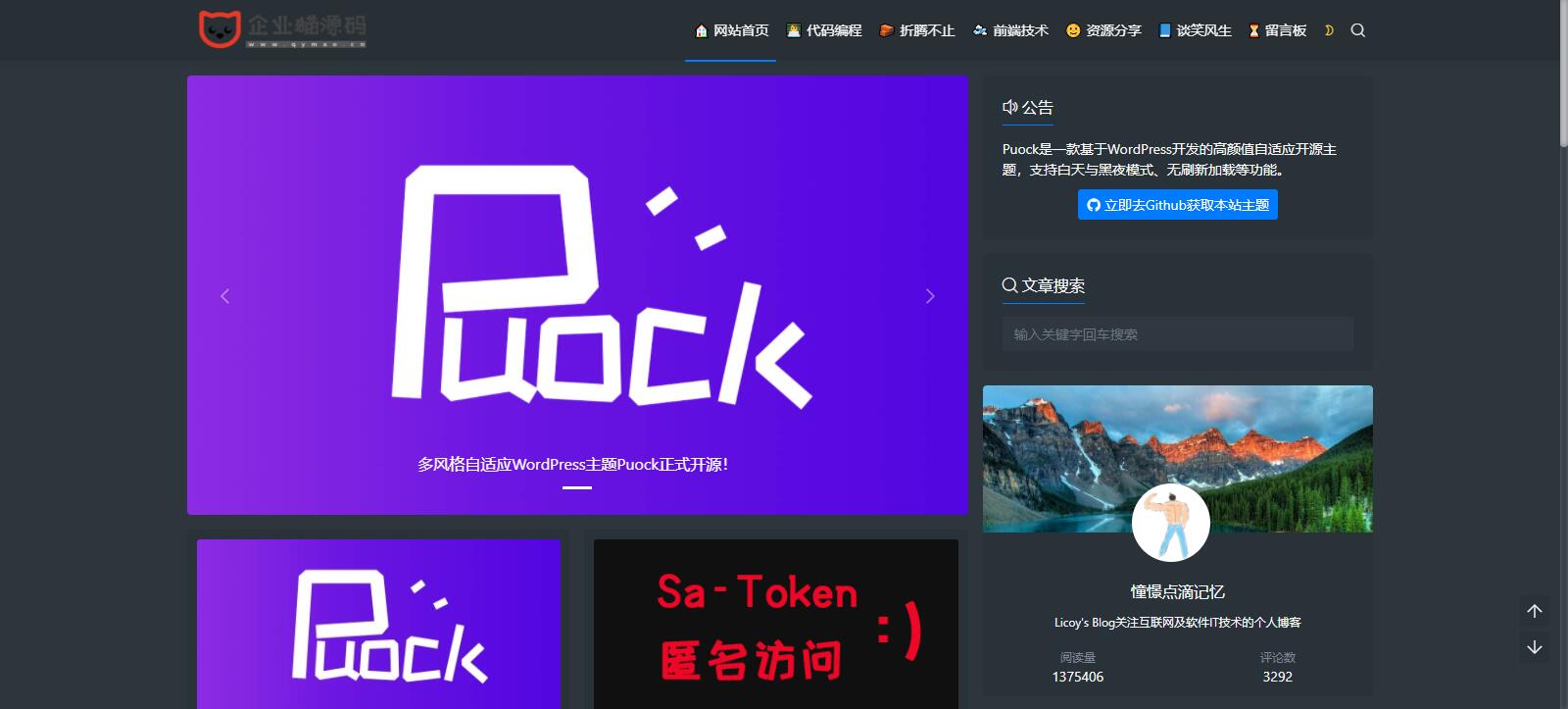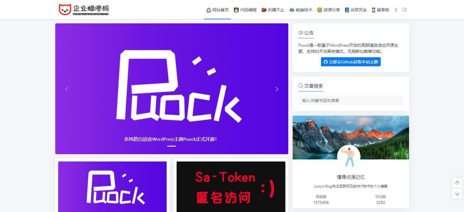 一款基于Wordpress开发的高颜值的自适应主题,支持白天与黑夜模式。首页支持三种布局:博客风格,cms风格,企业风格