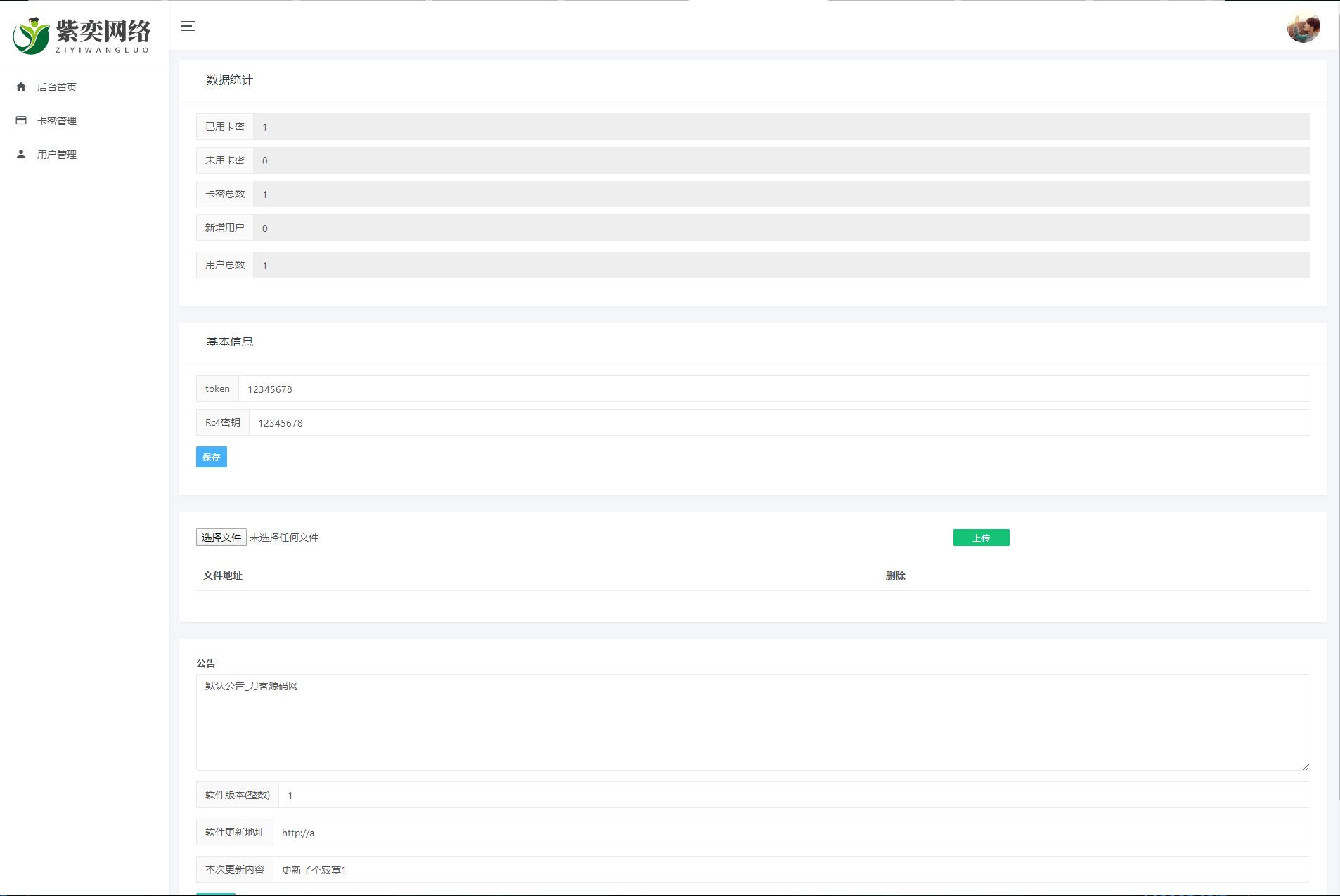 llua的源码和php后台源码 功能有 卡密系统 远程公告 远程更新 文件系统 网站默认账号 admin 123456 使用方法: 1.上传PHP源码到服务器解压 2.导入其中的dkewl.sql到数据库 3.俢改config.php中的数据库信息 4.俢改lua中的网站地址和其他数据 说明: 使用rc4加密重要信息,这样不容易被....应该吧 源码还在继续开发中,有什么意见可以评论! 源码可以随意俢改 开发 售卖 反正随便用