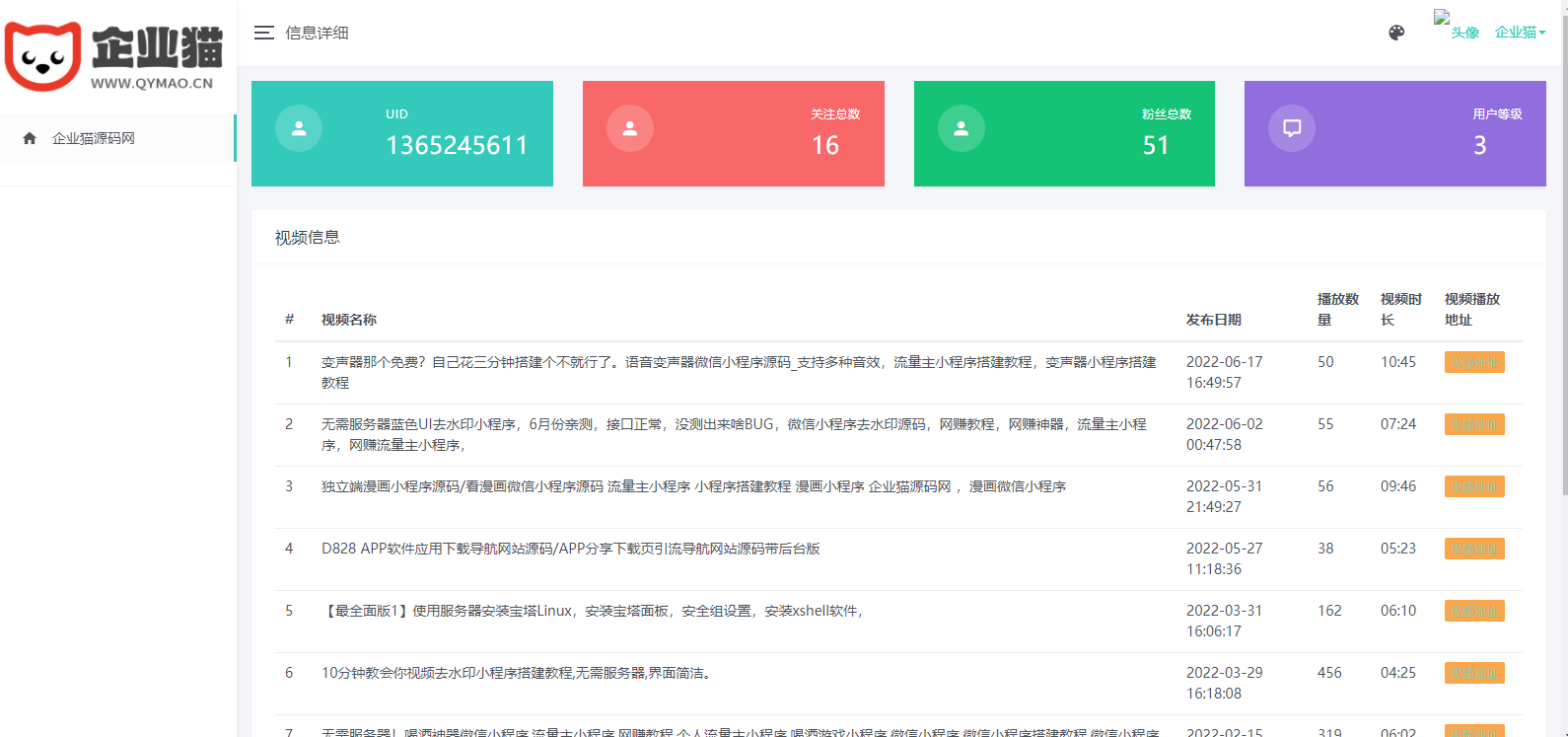 哔哩B站UP主直观展示实时数据源码分享b站Up主实时信息获取展示PHP源码 功能介绍通过uid和api实时获取信息 粉丝 作品 头像 播放量等 使用方法将源码放到空间或服务器里修改配置文件中的uid即可(打开index.php修改添加b站Up主用户Uid)全自动更新采集,上传源码即可!