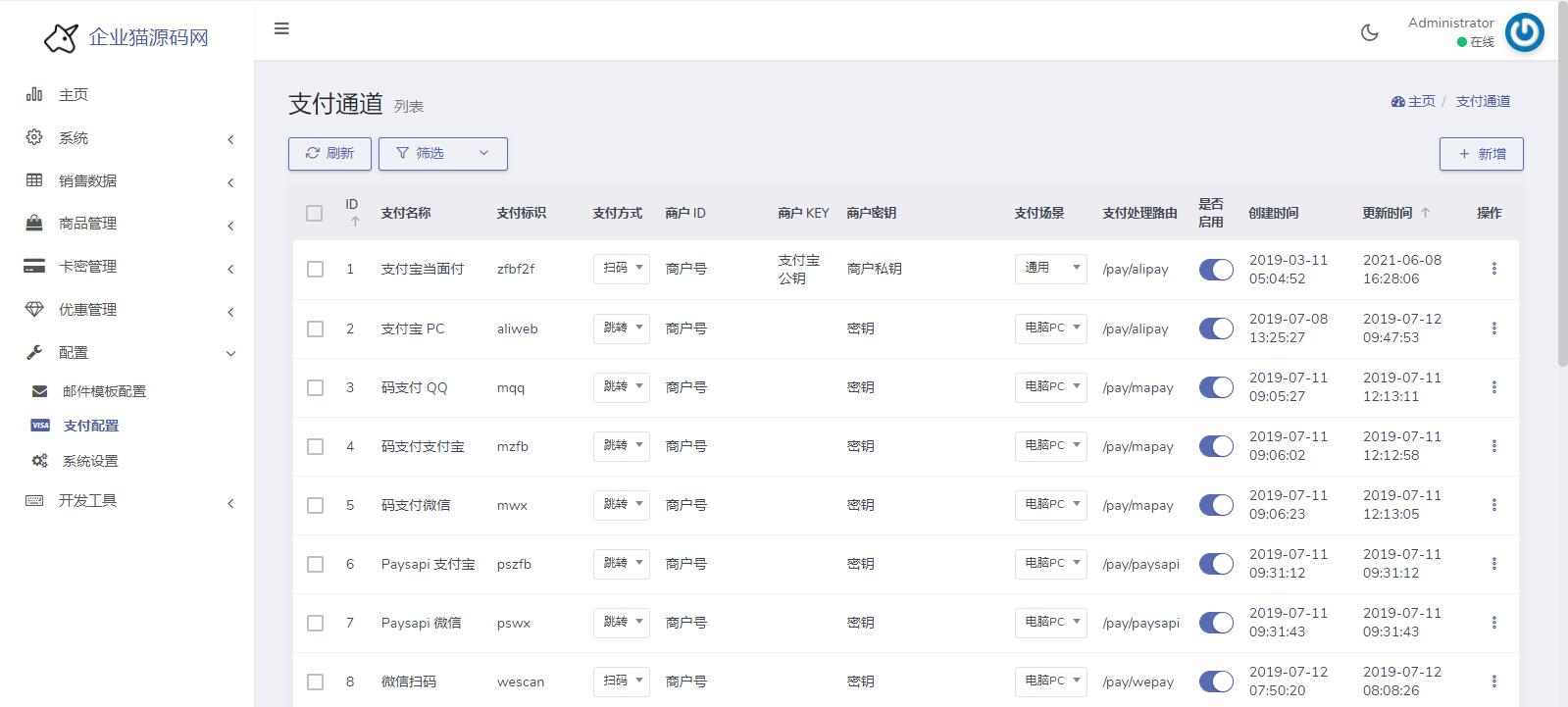 有二十三个支付接口,三套前台模板。 由于还得更新其他源码,就填充了一个商品,看起来UI不咋地。但我脑补了下, 填充完商品后,应该还是比较好看的。
