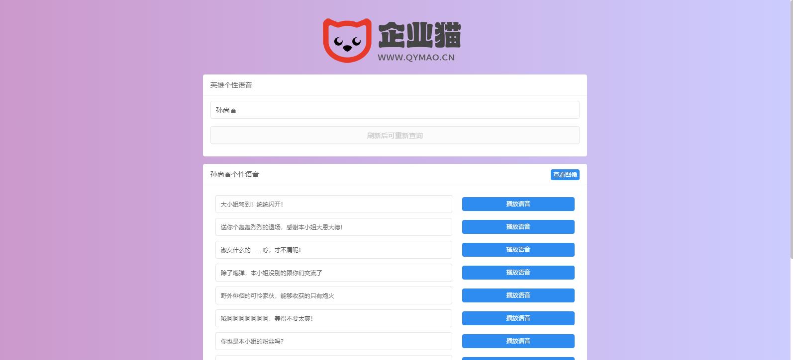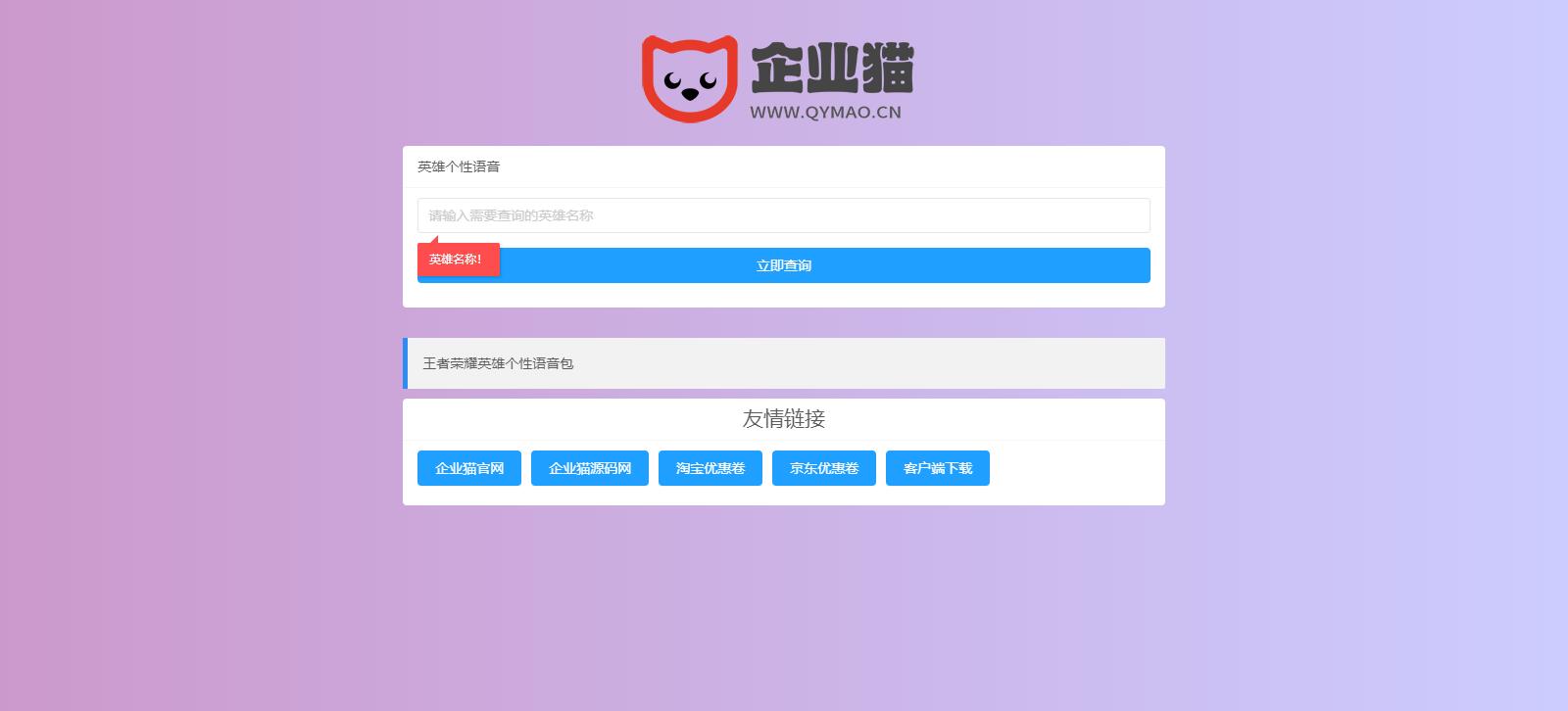 王者荣耀个性语音包查询系统开源源码,王者荣耀个性语音包查询系统 上传解压即可使用, 可以在线获取王者荣耀英雄的语音包,看起来还是蛮不错的,蛮好看的一个东西!