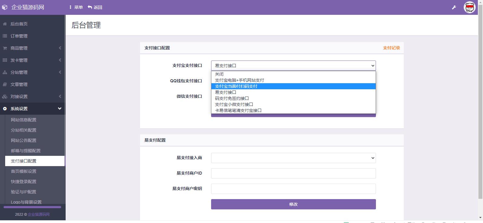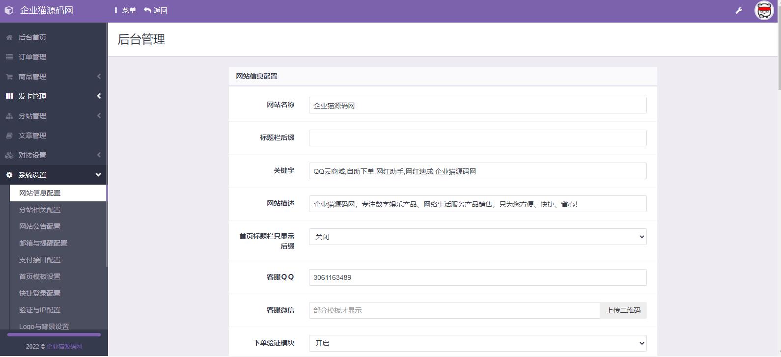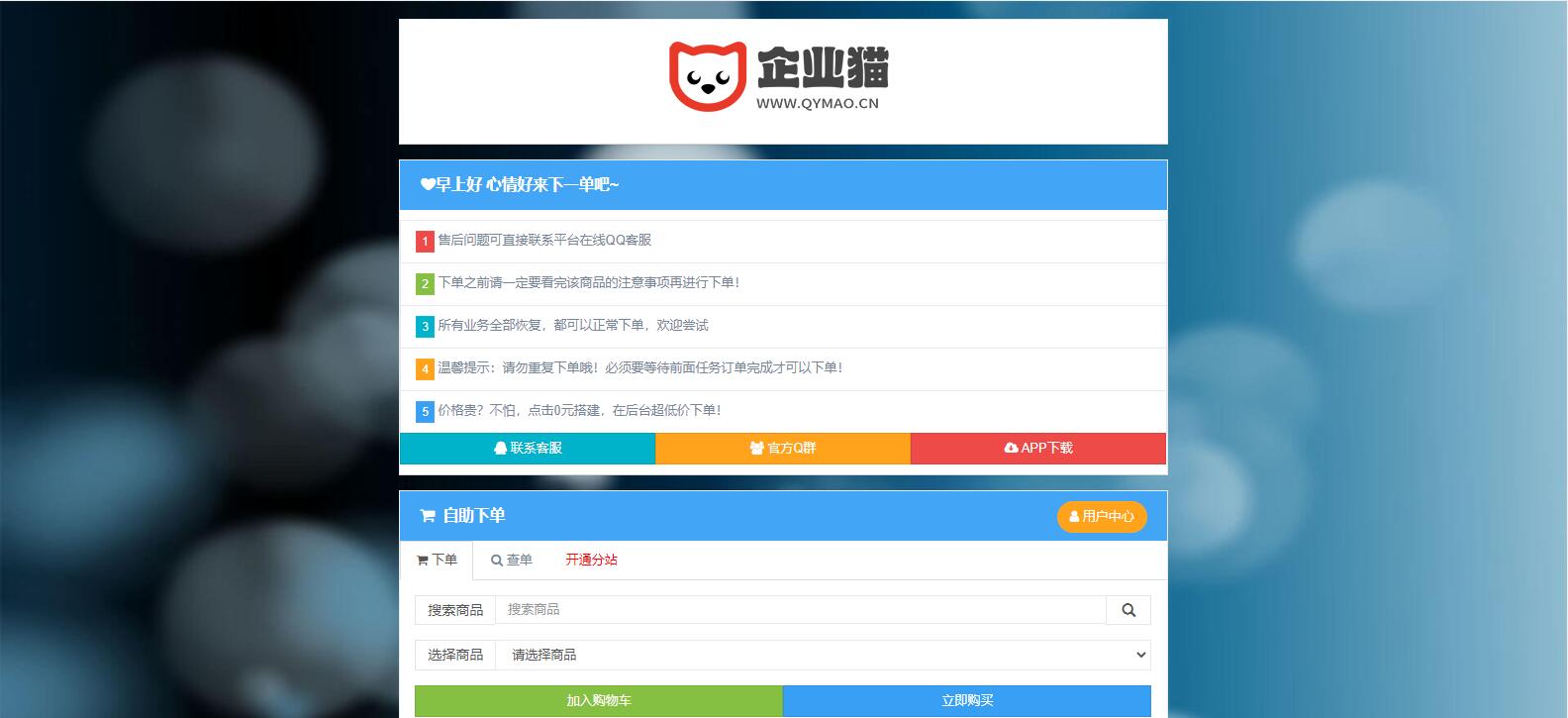 ①将源码上传至虚拟机或者服务器并解压,访问域名/install/index.php安装。 ②安装成功后登录后台,后台路径域名/admin,初始账号 admin,密码www.qymao.cn ③:修改后台账号密码、支付接口以及网站等相关信息 ④:添加商品分类及商品进行售卖即可