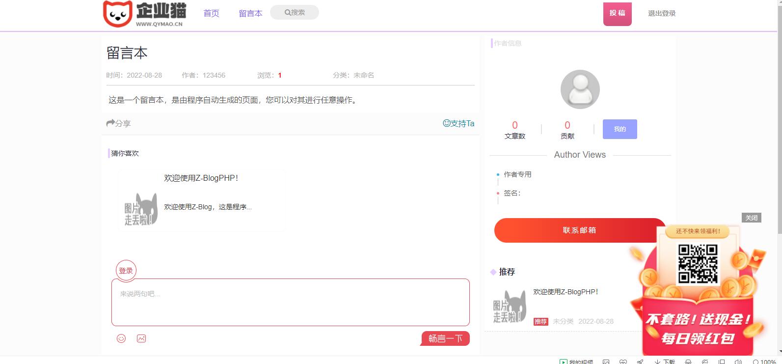 没数据,空的站和模板 1.首页设置文章广告位,文字广告位,PC+手机端显示 2.图片广告位PC端显示,可根据需要在主题配置中自行修改。 3.主题自适应PC端和手机端 4.首页模块更新也就是分类排行,分类设置和调用可在主题配置里修改。 5.主题配置里面自定义上传logo、ico、网站背景图 6.加入今日发布xx篇文章和本站拥有xx篇文章的文章数量统计 7.底部导航和轮播图下面的导航均可自定义设置链接、图标、文字