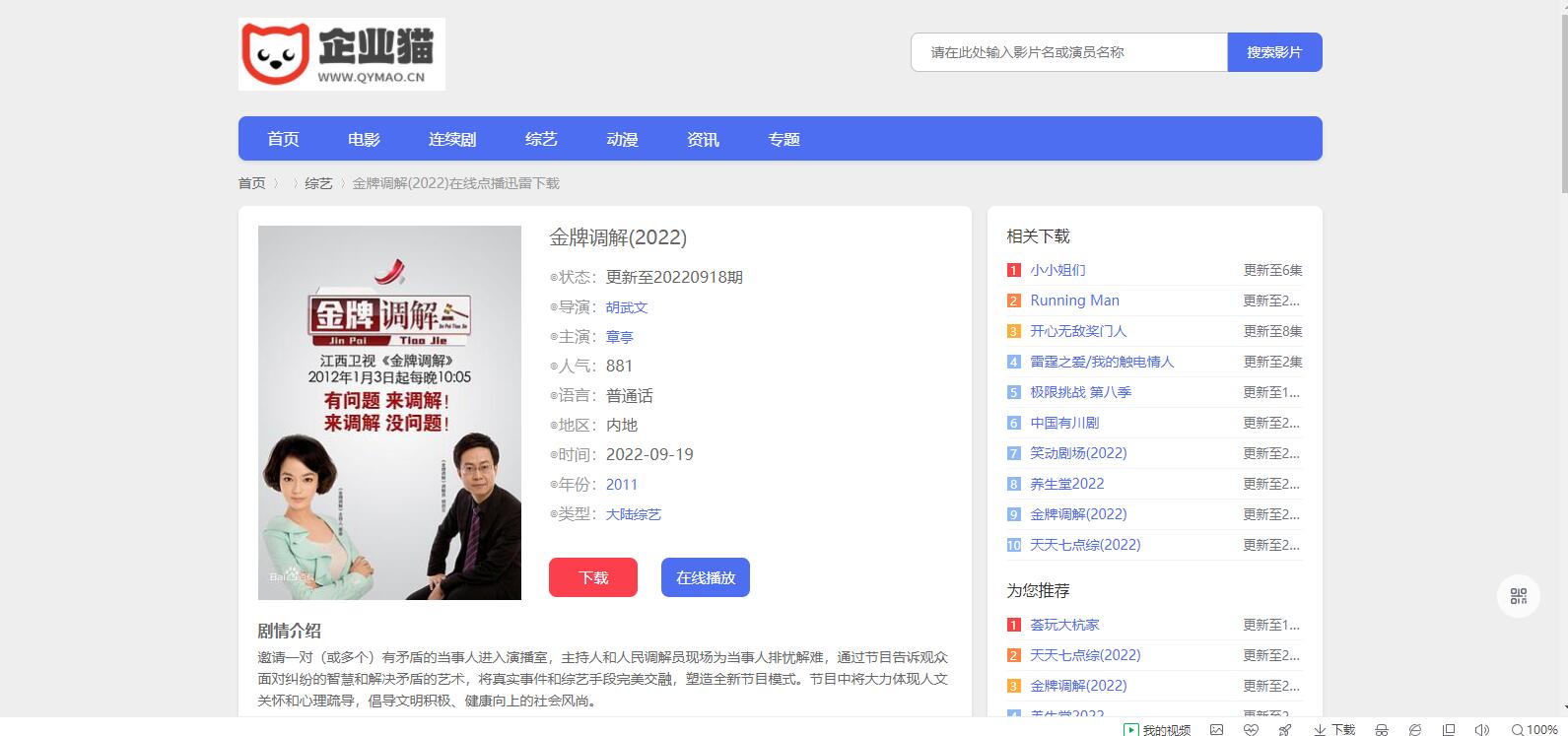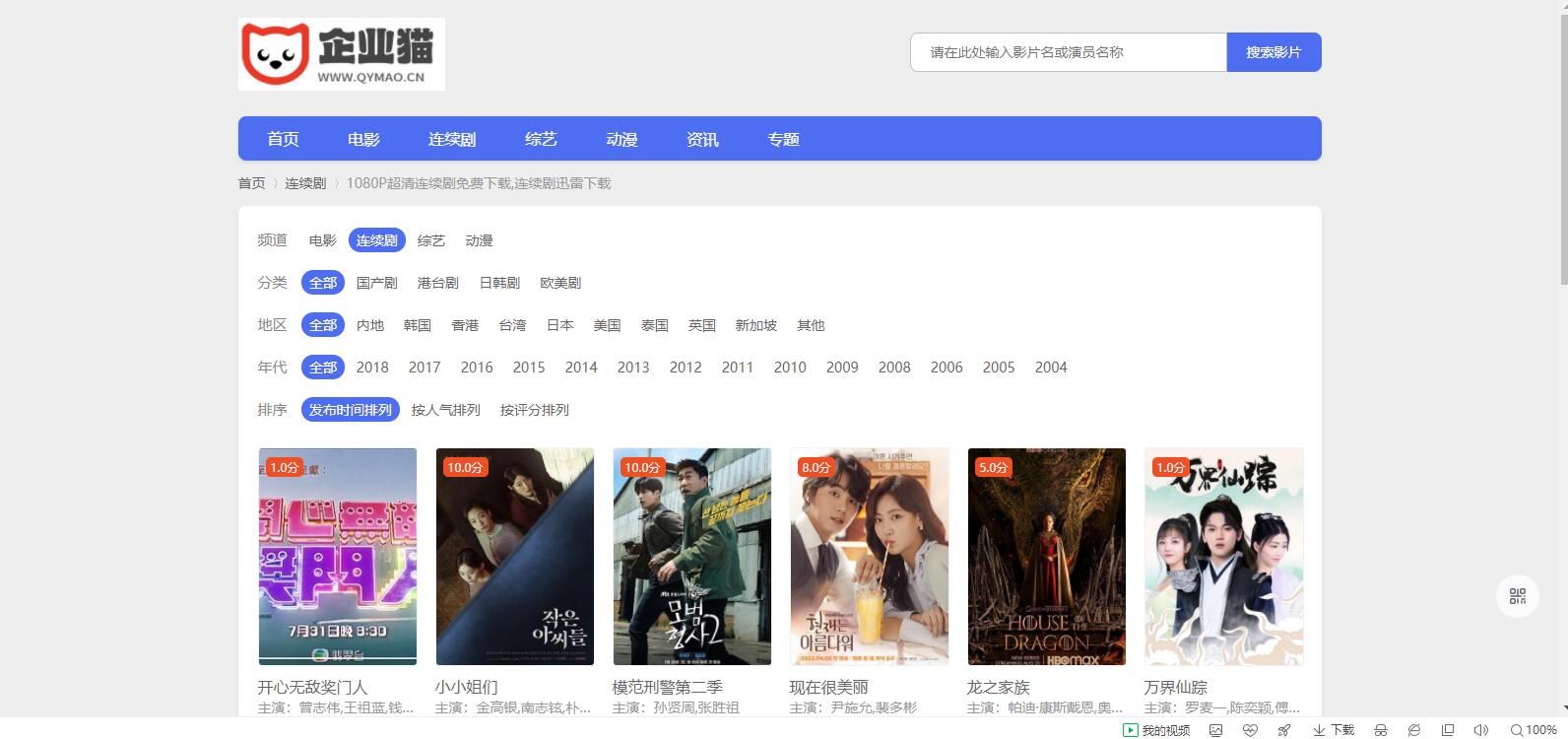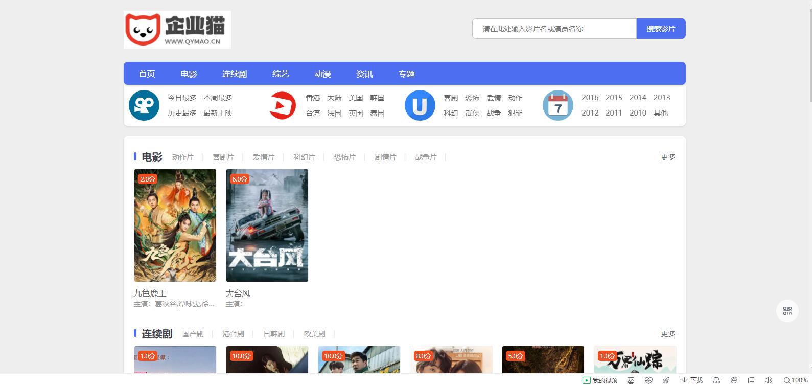 蓝色简约响应式小鸟影视主题 是一款蛮好看的影视主题,适用于苹果CMSv10版本,双端自适应