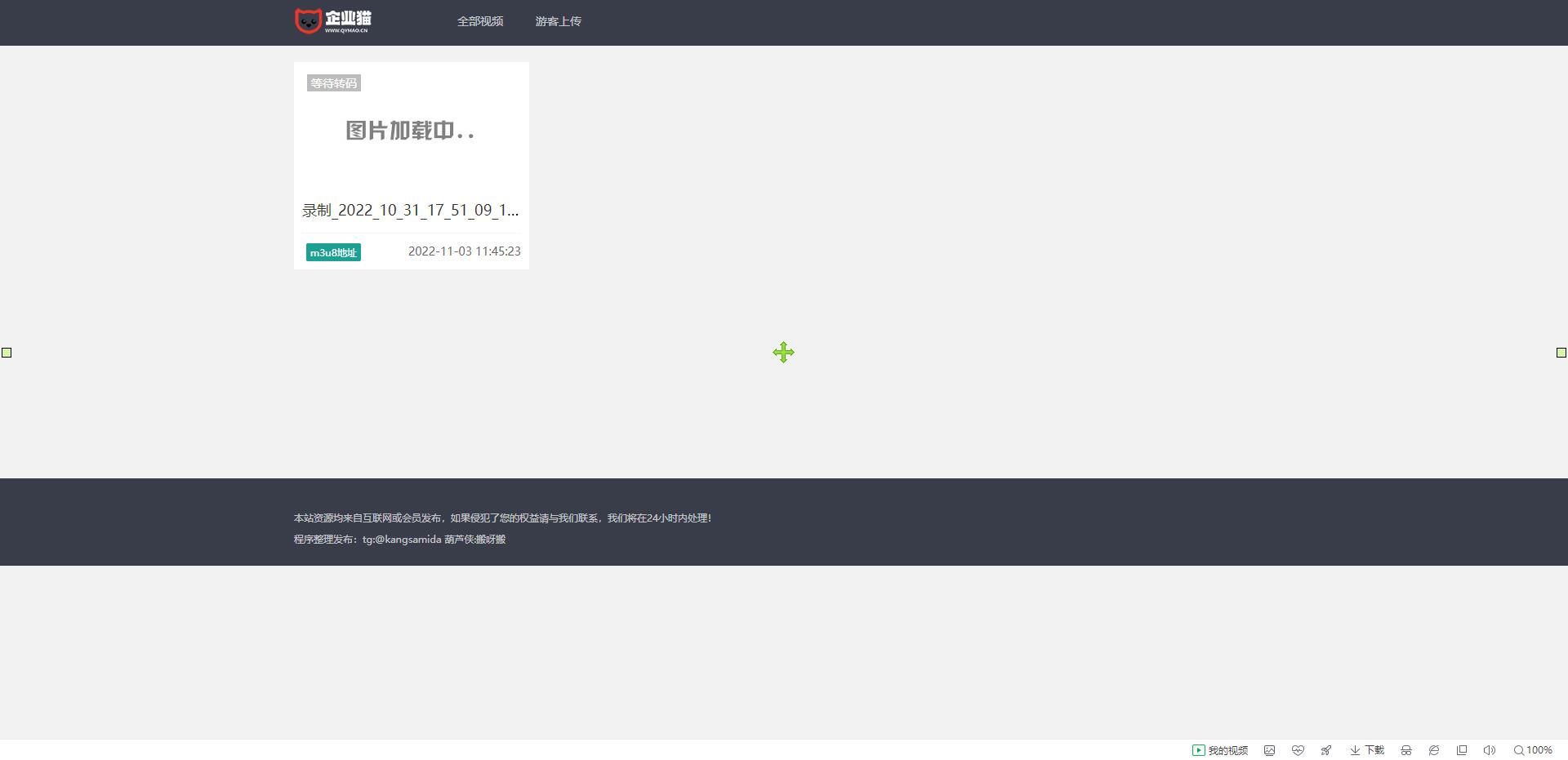 2022 php云切片程序转码 | m3u8生成程序开源源码 附教程 程序环境:Linux+Apache+PHP7.2+Mysql5.7 相信你也想分享自己的视频但是由于视频文件太大,服务器带宽太小或者苦于大平台过审需求导致分享困难。 现在,解决办法来了。这套程序部署后,在自己的网站上传的视频将会被自动切成ts格式使用m3u8播放器播放。 完全不用担心视频太大,解决了不是mp4 h.264制式在浏览器不能在线播放的问题。