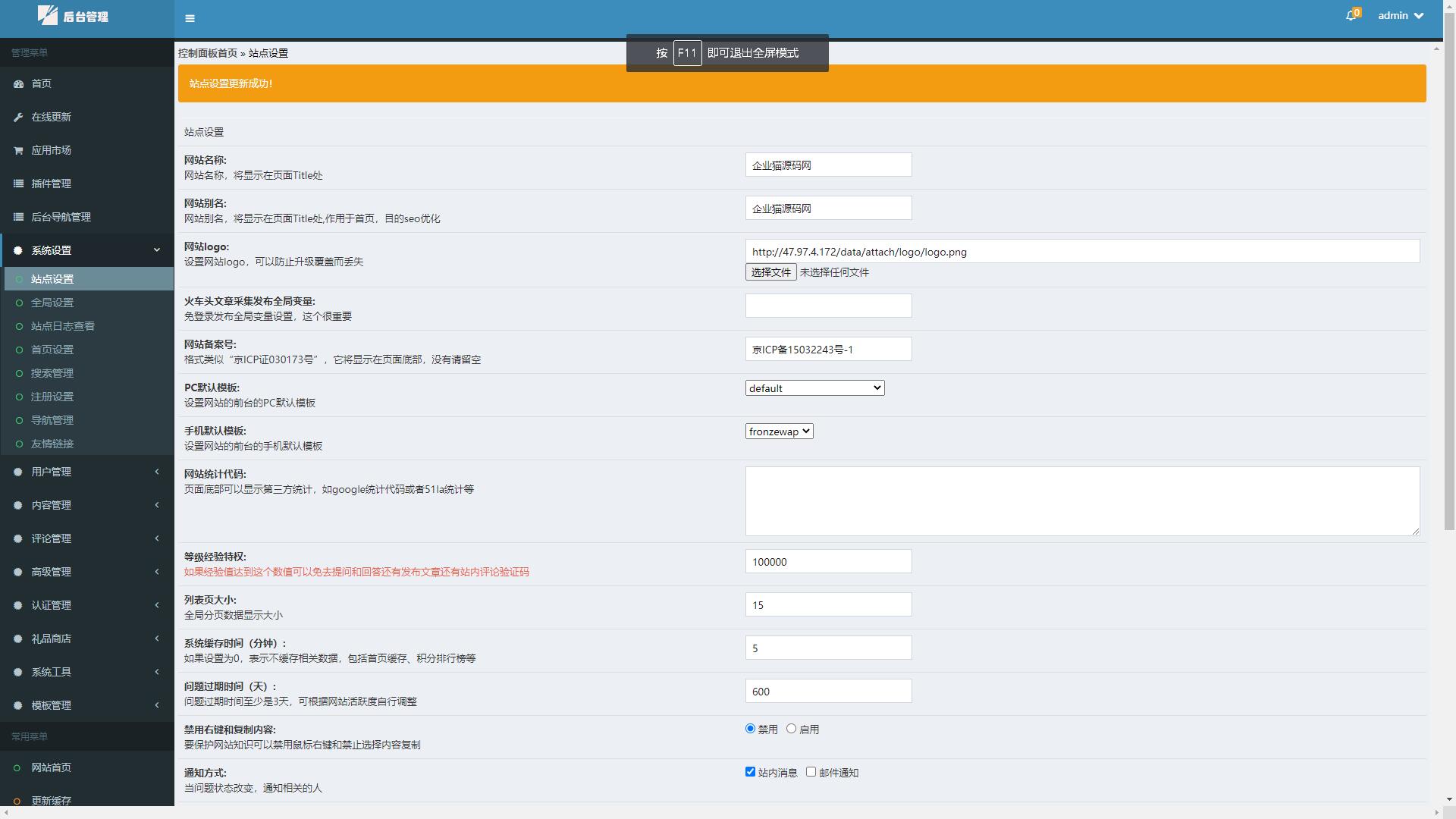 企业猫亲测后台源码截图: