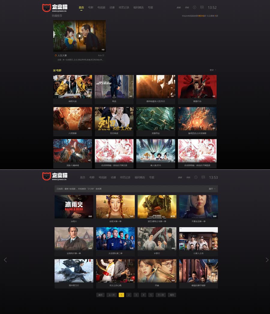 苹果CMS V10首涂第十四套模板,酷黑渐变特色自适应视频站模板。 一款酷黑模板整个布局以黑色为主用户在下滑或是上调页面时具有颜色由深变浅或浅变深的颜色渐变功能! 完美自适应所有市面上的电子视频设备。 还有触动封面直接播放视频内容的独特设计为你的广告收益大大提供了更直接的功能。 还在播放器右侧增加了选集模块功能集成了推荐影片和下载, 物超所指值得入手的一款影视模板!还有很多特色小功能等你慢慢体会发现!