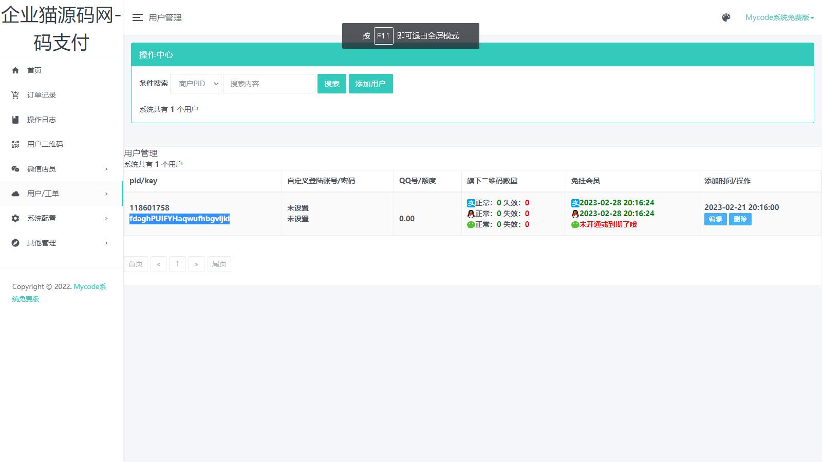 企业猫亲测用户后台源码截图: