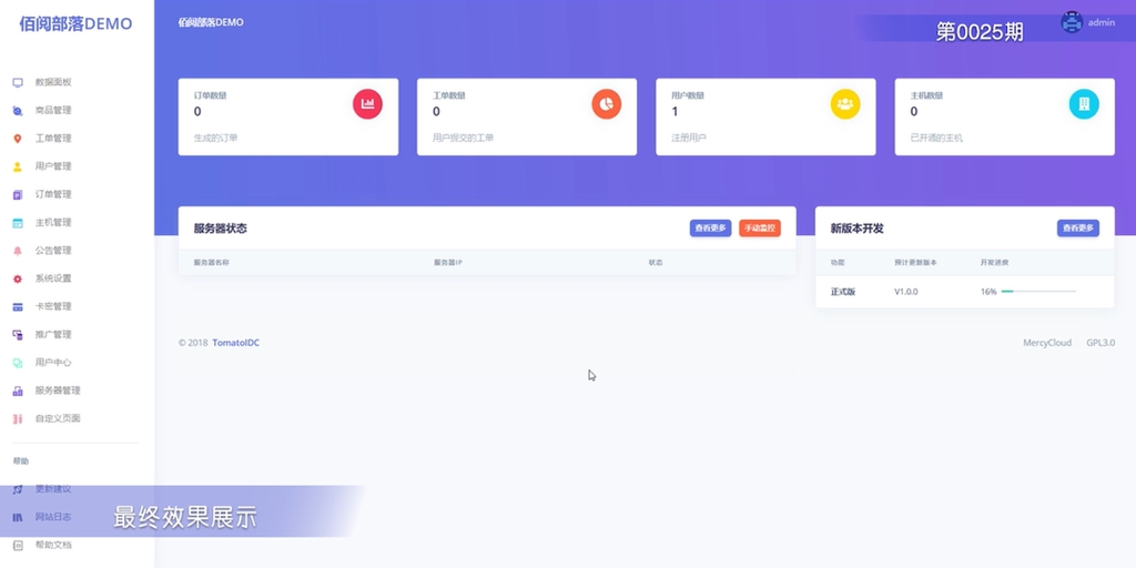 TomatoIDC是一款以GPL3.0协议开源虚拟主机销售系统, 具备易于扩展的插件系统,模版系统,使用强大的Laravel框架进行驱动, 能帮助你轻松的扩展虚拟主机销售业务。 易于使用,界面清新可视化管理界面可扩展,支持(支付,服务器,功能)插件, 支持多种模版功能强大,支持卡密充值,支持多种支付方式, 支持接入微信公众号(账户绑定,查询余额)人性化,Gravatar头像,微信公众号提醒,邮件提醒。