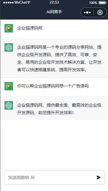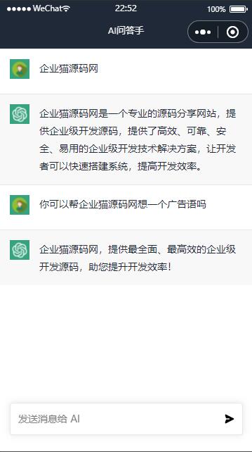 2023-2-27企业猫亲测可用。详细可看企业猫亲测截图 AI说的挺准的,我问了下它企业猫源码网咋样 他的回复是:企业猫源码网是一个专业的开发者社区,提供众多免费源码、 开发工具、开发资料,拥有丰富的资源,可以帮助开发者学习和提高技术水平。 又问了下中国房价为什么居高不下,可惜它并没有回答