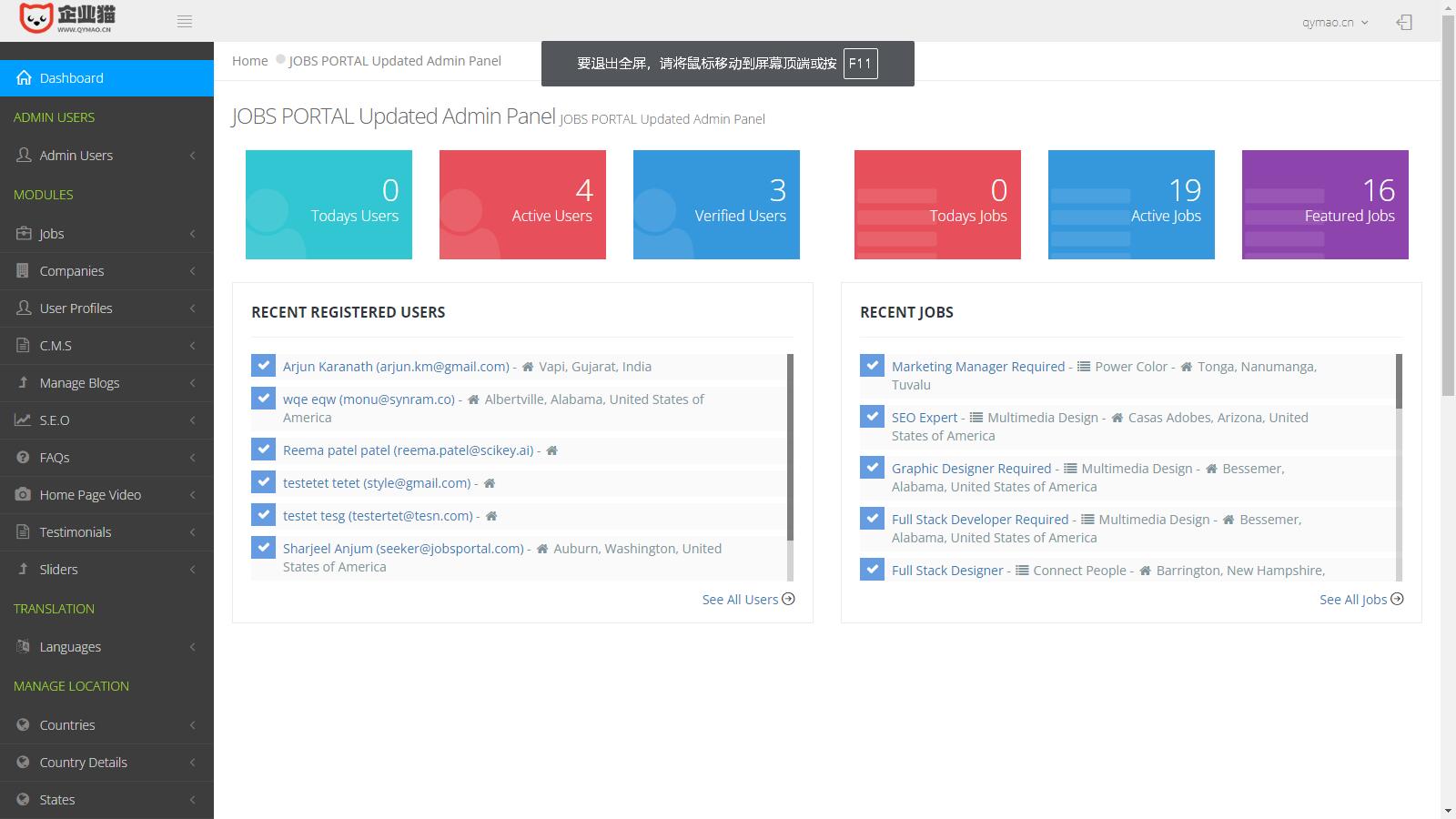 Jobs Portal 求职招聘系统 是为求职者和公司发布职位而开发的交互式求职招聘源码。 它使求职者能够发布简历、搜索工作、查看个人工作列表 。它将提供各种公司在网站上放置他们的职位空缺资料, 并且还可以选择搜索候选人简历。除此之外,还有一个管理模块供客户更改数。