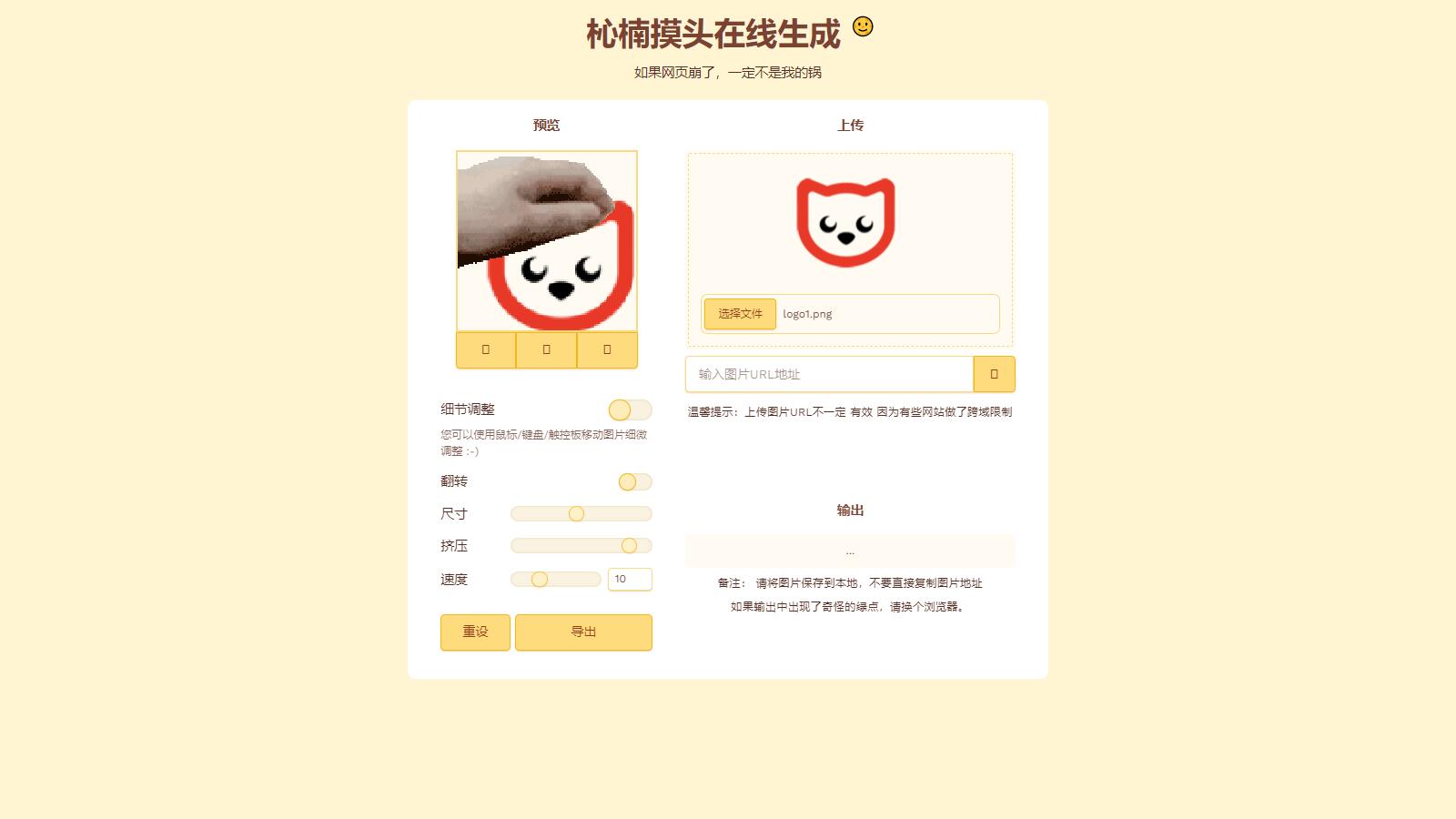 源码介绍: 杺楠GIF摸头头像在线生成html源码,上传头像或者图片, 自定义调整大小、速度等等,最后导出生成GIF摸头表情包。 企业猫亲测源码截图: 声明:本站所有文章,如无特殊说明或标注,均为本站原创发布。任何个人或组织,在未征得本站同意时,禁止复制、盗用、采集、发布本站内容到任何网站、书籍等各类媒体平台。如若本站内容侵犯了原著者的合法权益,可联系我们进行处理。