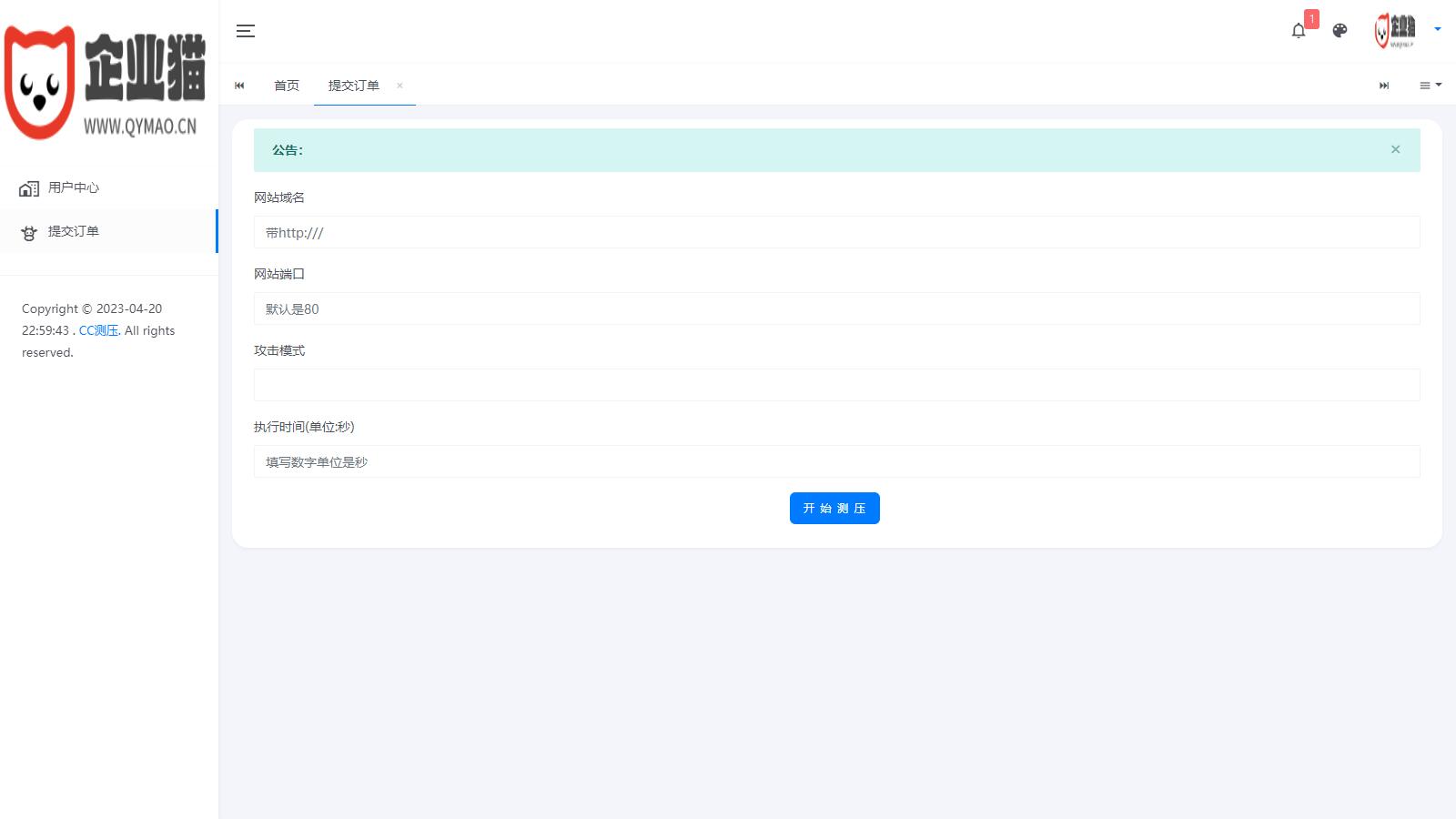 2023最新网站服务器CC压力测试系统源码 前后端全开源 一款可测压的系统,但不提供接口。 此源码仅供学习交流使用!提示:攻击网站属于违法犯罪行为。请勿违法使用!!!