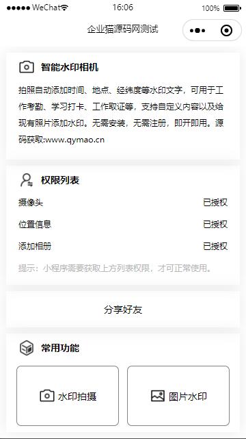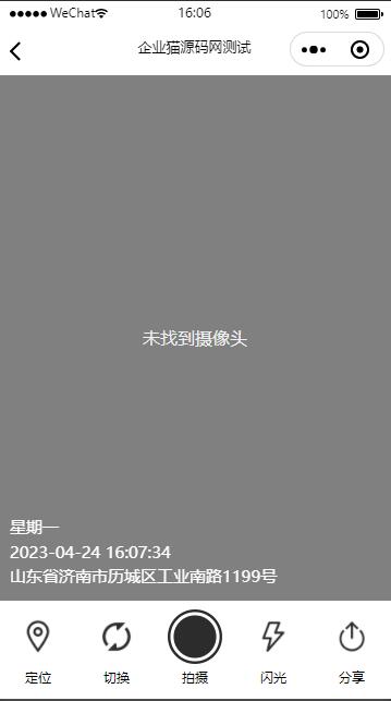相信大家日常在生活中或者工作中都有使用过水印相机来拍照记录吧 但是又要在手机上面多下载一个APP 那么小编今天给大家带来一款智能水印相机 拍照自动添加时间、地点、经纬度等水印文字 可用于工作考勤、学习打卡、工作取证等,支持自定义内容以及给现有照片添加水印。 用户无需安装,无需注册,即开即用。 支持时间地点日期添加 支持用户随意切换前后摄像头 支持用户随意开启手机闪关灯 支持用户上传图片来生成 等等功能大家自行模式吧,小编就不多说了 好了下面来看看小编的测试演示图!