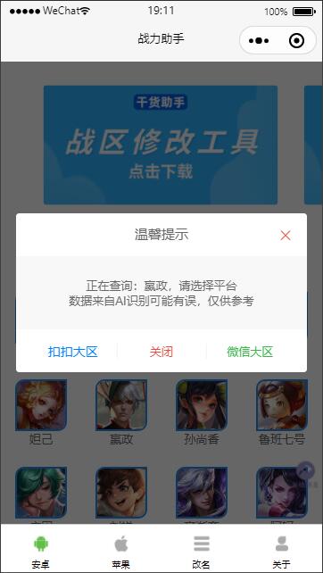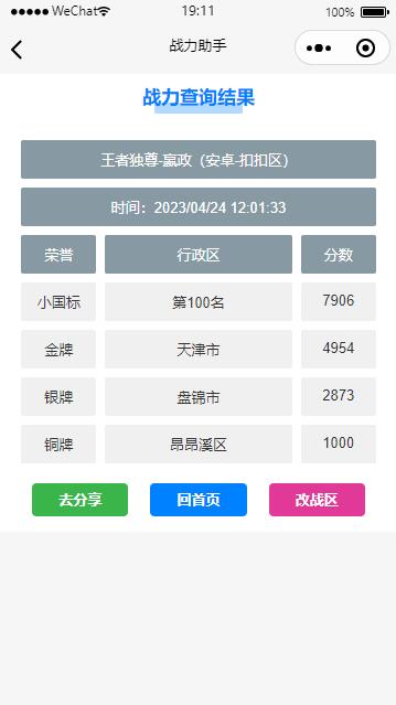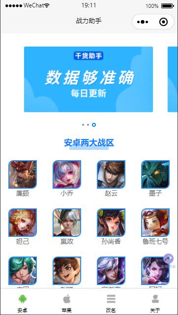 王者荣耀战力查询小程序除了功能外,其UI设计也非常优美。