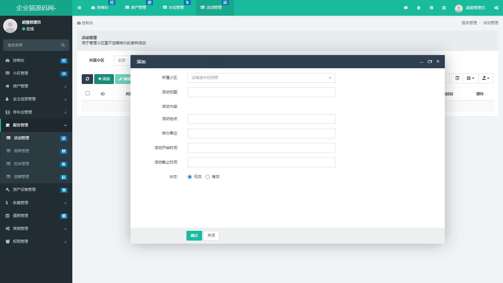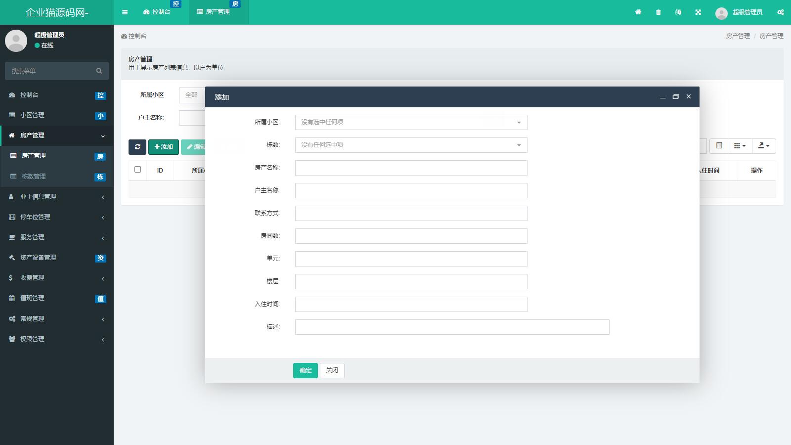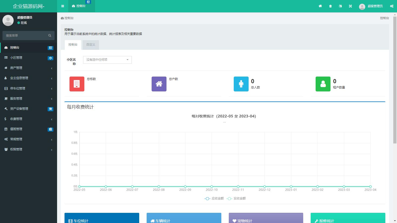 新版PHP多小区物业管理系统支持手机端thinkphp5源码 功能模块:统计分析、小区管理、房产信息管理、业主信息管理、停车位管理、服务管理、资产设备管理、收费管理、值班管理、权限管理、系统配置 小白提醒:源码需架设后才能使用,可在本地电脑以及局域网内运行。