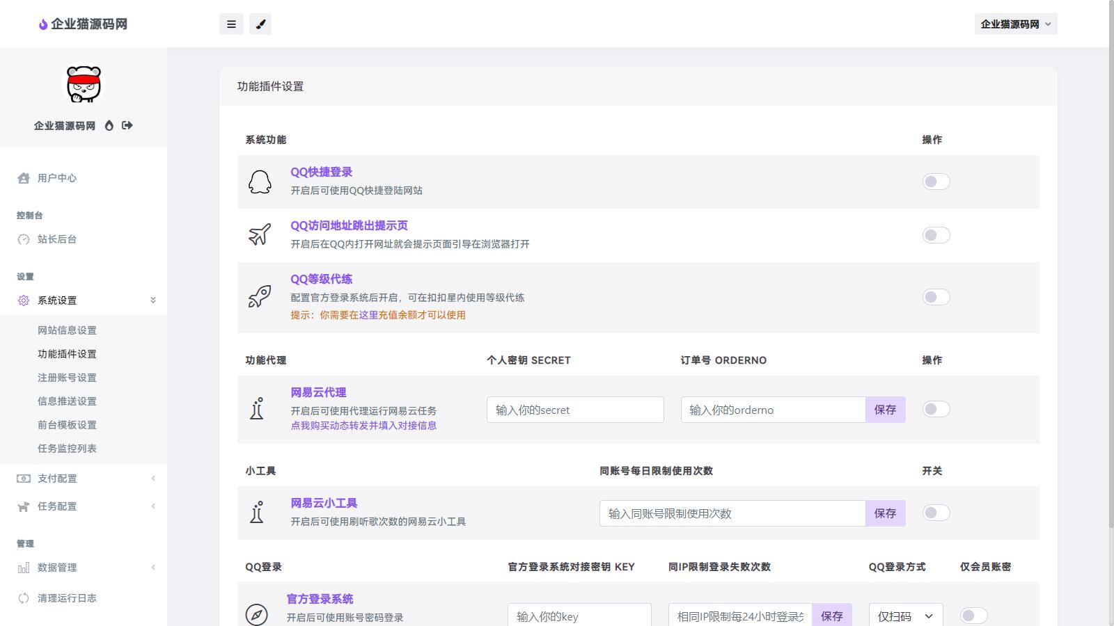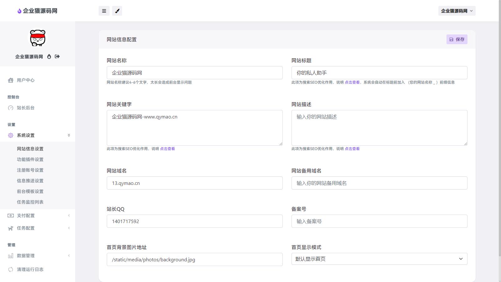 企业猫亲测后台源码截图: