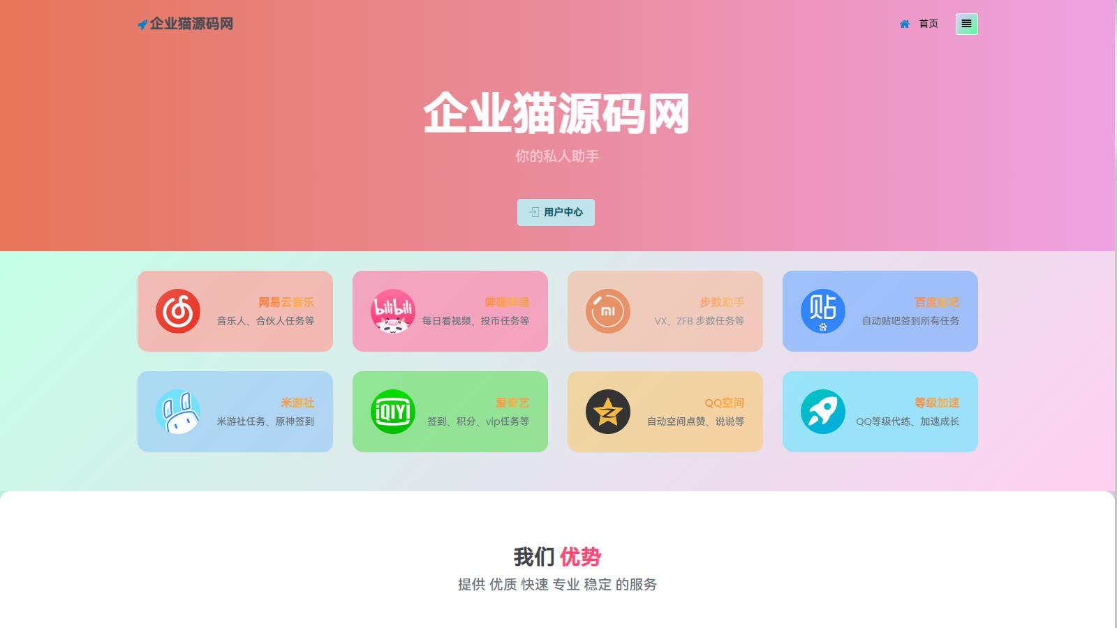 企业猫亲测前台源码截图: