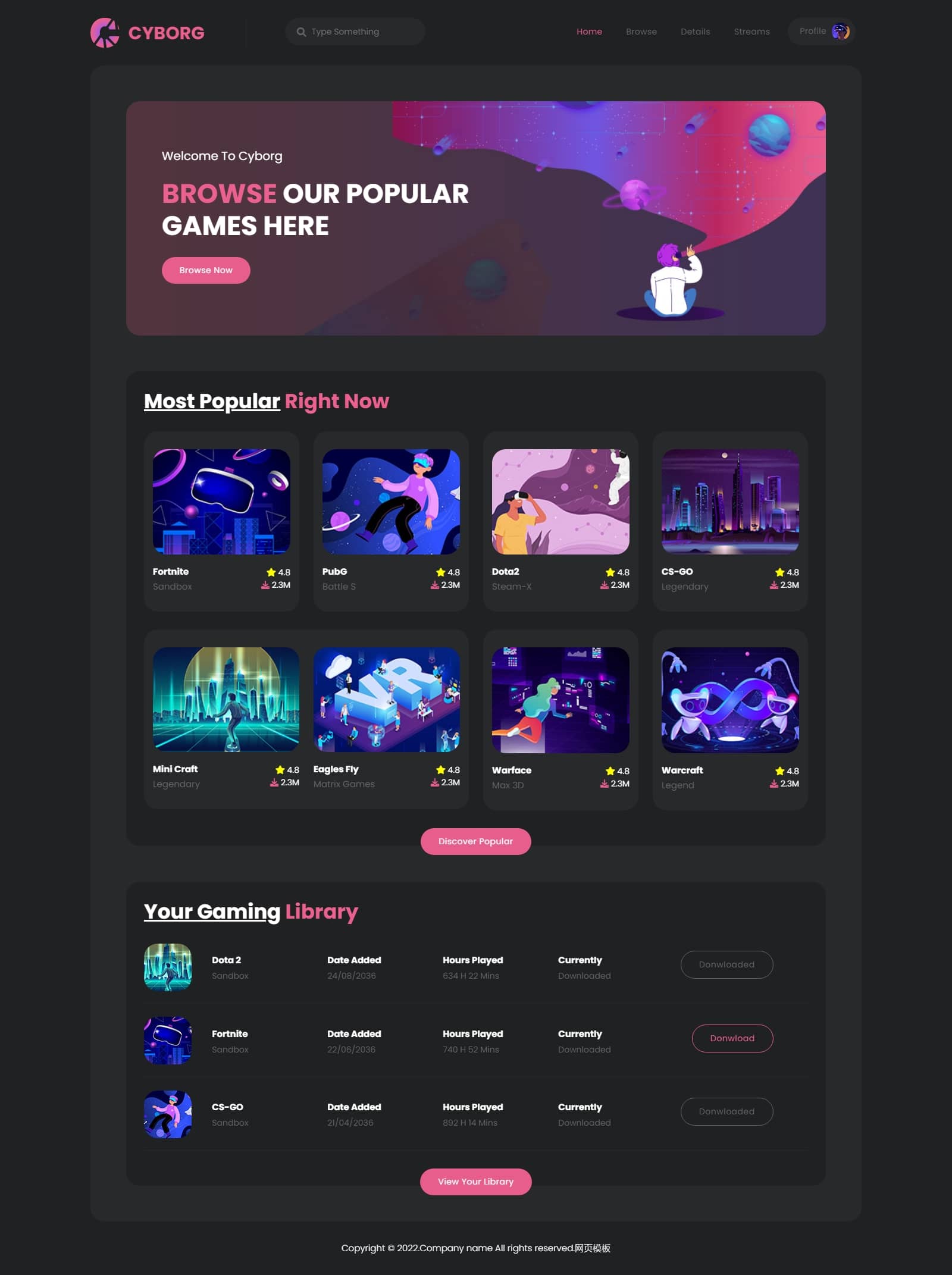 HTML5热门游戏体验宣传网站模板是一款热门游戏体验网站模板下载。 提示:本模板调用到谷歌字体库,可能会出现页面打开比较缓慢。