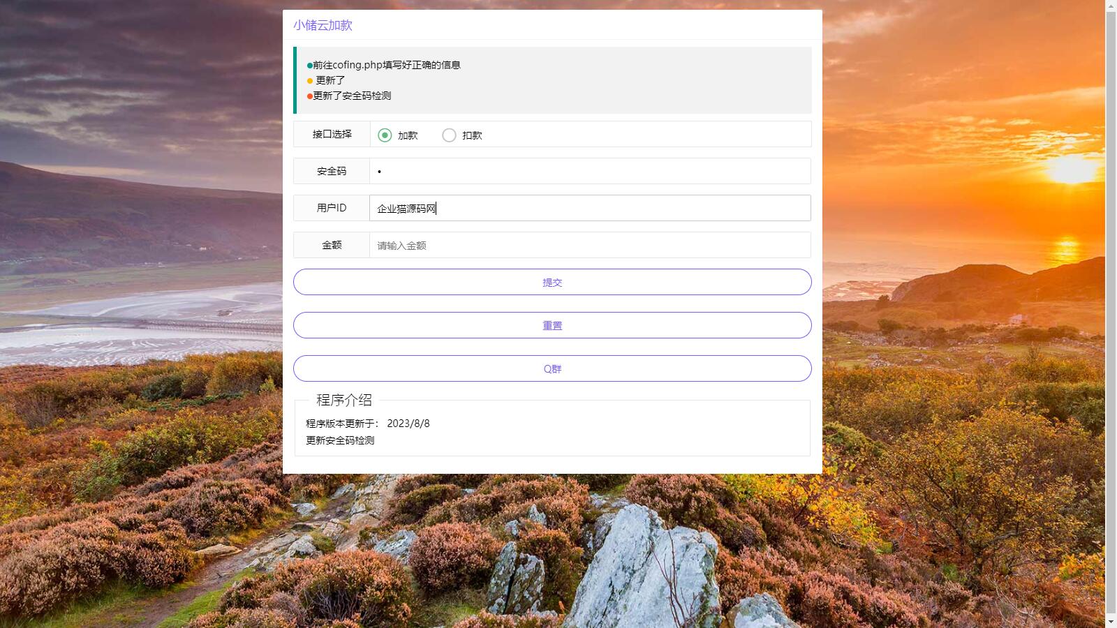 小储云商城网页加减款系统源码是一款非常实用的网页加减款系统, 可以帮助网站管理员更加方便地管理网站的收入和支出,