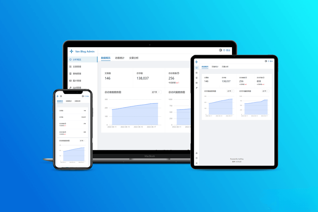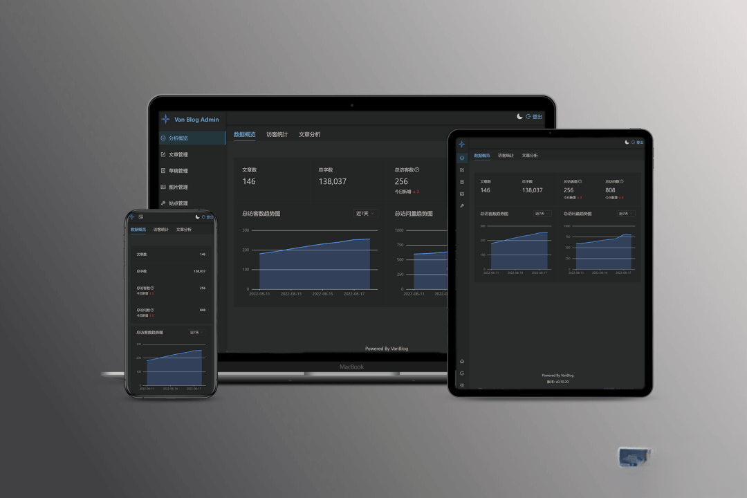 VanBlog是一款简洁、实用、优雅的个人博客系统,它支持全自动按需申请HTTPS证书、 黑暗模式、移动端自适应和评论功能。该系统内置了流量统计和图床,并集成了评论系统。 此外,VanBlog还具有无限的可扩展性,提供完备的后台管理面板, 支持黑暗模式、移动端,一键上传剪贴板图片到图床,并带有强大的编辑器。 博客页面简洁明了,排版美观大方,让读者可以更专注于博主的内容。此外,还支持黑暗模式, 可以为读者提供更加舒适的阅读体验。移动端自适应设计也让用户可以在手机上方便地浏览博客内容。 作为一个个人博客系统,VanBlog还提供了完善的后台管理功能,包括文章管理、 分类管理、标签管理、评论管理等,让用户可以方便地管理自己的博客内容。 同时还支持一键上传剪贴板图片到图床,大大简化了博客图片上传的流程。