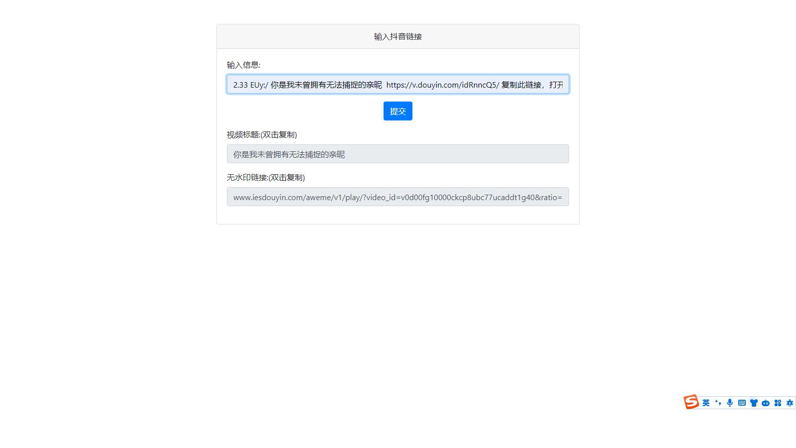 最新抖音去水印PHP源码 非第三方接口 源码全开源 视频解析接口来自官方抖音视频接口!非第三方接口!上传PHP环境中即可运行!支持上传二级目录访问! 访问你的域名地址/qymao.php douyin.php(此文件可以自行重新命名) 支持带有文本的链接和视频ID或者分享的链接地址 解析输入示例;https://v.douyin.com/ideKEeSf
